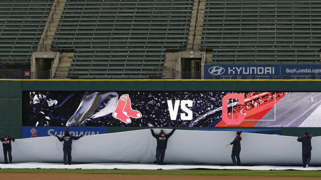 El juego inaugural de campaña, programado para el lunes, también fue pospuesto a causa del mal clima. El partido se realizó el martes con triunfo de los Medias Rojas 6-2. Los Indios se repusieron para vencer 7-6 a Boston en el segundo de la serie.