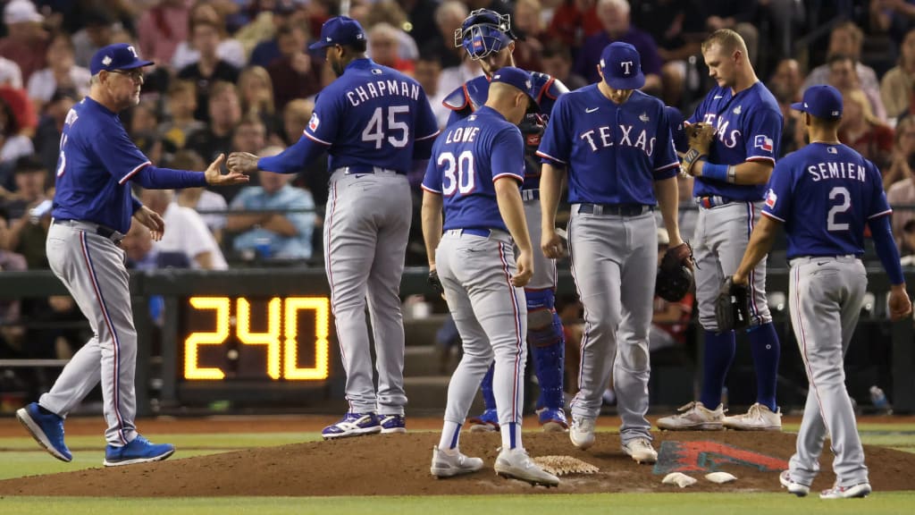 “Me gusta el ritmo de juego ahora”, indicó el mánager de los Rangers Bruce Bochy. “No creo que vaya demasiado rápido”.