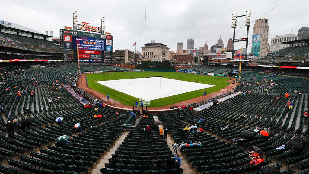 Detroit informó que el terreno de juego en el Comerica Park recibió seis pulgadas de lluvia. Se despejó en un momento, lo que permitió que las cuadrillas levantasen la lona para preparar el cuadro interior. Pero luego que ambos managers revisaron el terreno junto a los umpires, la lona volvió a ser colocada. El atraso prosiguió durante dos horas y media adicionales.