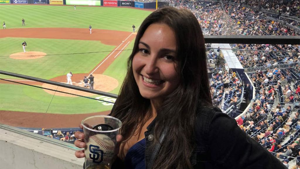 Gabby DiMarco disfrutaba una noche de béisbol el martes durante el partido entre los Padres y los Bravos en el Petco Park. Lo que no esperaba era hacer una atrapada que la haría bien famosa.