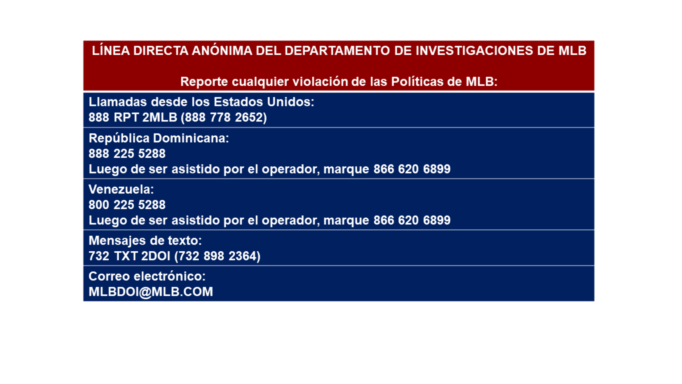 - Política Conjunta sobre Violencia Doméstica, Agresión Sexual y Abuso de Menores para Jugadores de Ligas Mayores