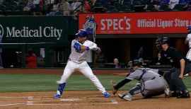 Tadeo Alejandro Osuna…younger brother of 2017 AL All-Star selection RHP Roberto Osuna and nephew of former MLB RHP Antonio Osuna…has deployed a detailed routine as he strides to the plate for each plate appearance since he was 16 years old…draws a cross on the foul line with the knob of his bat, taps his bat on his right foot and home plate, then kicks the barrel into the air and catches it…told the Dallas Morning News that he added the bat kick-flip with Single-A Down East in 2021 and has performed the pre-at-bat ritual ever since.