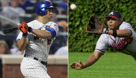 1999 POST-SEASON HIGHLIGHTS:--Division Series: Extended career Division Series hitless drought to 0-for-20 before stroking 2nd-inning single in Game 2 in Atlantab&Went 4 x 18 (.222) in the DS, with 2 RBI...NLCS: Had 5 hits in 17 AB (.217)b&Drove in only 1 run, but it was a pennant-winner, as he coaxed a 1-out, bases-loaded walk in the bottom of the 11th off the Metsb Kenny Rogers to drive in Gerald Williams and give the Braves a 10-9 triumph in Game 6...World Series: Limited to 1 hit in 13 AB (.077).