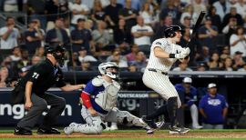 In 50 games with the Yankees, batted .171 (26-for-152) with 20 R, six doubles, seven HR, 23 RBI, 20 BB, one HP and five SF… Appeared defensively at 1B (49 games, 41 starts) and C (one game)...Reached base in 28 of his 41 starts, including 24 of his first 30 starts from 6/18-8/2...Was just the sixth Yankee in franchise history to hit at least six HR in his first 24 career games, joining Gary Sánchez (11 HR from 2015-16), Shane Spencer (eight HR in 1998), Kevin Maas (eight HR in 1990), Shelley Duncan (six HR in 2007) and Steve Whitaker (six HR in 1966)…Was also just the seventh Yankee in franchise history to record at least 19 RBI in his first 24 career games (since RBI became an official stat in 1920), joining Joe DiMaggio (27 RBI in 1936), Shane Spencer (22 RBI in 1998), Mickey Mantle (22 RBI in 1951), George Selkirk (21 RBI in 1934), Gary Sánchez (21 RBI from 2015-16) and Hideki Matsui (21 RBI in 2003)...Batted .300 (6-for-20) with two doubles, two HR, 12 RBI and two SF with RISP over his first 21 games, from 6/18-7/11...Was signed to a Major League contract and selected to the active roster on 6/18…Made his Major League debut later that day vs. Baltimore (1-for-4)…Picked up his first Major League hit with a third-inning single...Recorded his first career RBI with a 10th-inning sacrifice fly on 6/19 vs. Baltimore...Hit .325/.413/.700 (13-for-40) with eight R, three doubles, four HR, 11 RBI and six BB over a 13-game span from 6/22-7/6...Made his first Major League appearance at C on 6/28 at Toronto after entering as a defensive replacement in the ninth...Hit his first career HR with a solo shot in the fifth inning on 7/4 vs. Cincinnati…Also batted leadoff in the starting lineup for the first time in his Major League career…Was just the fifth Yankee in the last 25 years (since 2000) to bat leadoff in the starting lineup within his first 15 career games, joining Anthony Volpe (4/12/23 at Cleveland and 4/14/23 vs. Minnesota), José Pirela (9/26/14 at Boston), Brett Gardner (five times from 6/30-7/11/08) and Bubba Crosby (4/21/04 at CWS)...Became the first rookie in franchise history to hit three HR in a game on 7/6 vs. Boston (3-for-5, three R, three HR, seven RBI)…Was the 26th player in Yankees history to hit at least three HR in a regular season game (36th time) and first to do so since Aaron Judge hit three HR on 9/22/23 vs. Arizona…Including the postseason, was the 27th player in Yankees history to accomplish the feat (39th time)…Hit his first career leadoff HR, a three-run HR in the fifth inning and a three-run HR in the seventh inning…Was just the second Yankee in franchise history to hit three HR from the leadoff spot, joining Aaron Hicks (7/1/18 vs. Boston)…Was the seventh Yankees first baseman (10th time) to hit three HR in a game, joining Anthony Rizzo (three HR on 4/26/22 vs. Baltimore), Mark Teixeira (three HR on 5/8/10 at Boston), Tony Clark (three HR on 8/28/04 at Toronto), Tino Martinez (three HR on 4/2/97 at Seattle), Johnny Mize (three HR on 9/15/50 at Detroit) and Lou Gehrig (four times: four HR on 6/3/32 at Philadelphia-AL, three HR on 5/22/30-G2 at Philadelphia-AL, three HR on 5/4/29 at Chicago-AL and three HR on 6/23/27 at Boston)...According to Elias, was the 34th rookie in the modern era to hit at least three HR in a game and first since the Athletics' Jordan Diaz on 5/9/23 at Yankee Stadium…According to Sarah Langs, was the third rookie in the modern era to hit three HR in a game from the leadoff spot, joining San Francisco’s Mike Yastrzemski (8/16/19 at Arizona) and Pittsburgh’s Andrew McCutchen (8/1/09 vs. Washington)…According to Elias, his 17 career games were the fifth-fewest by any player in Major League history to hit three HR in a game, trailing only Philadelphia’s Bobby Estalella (three HR in his 10th Major League game on 9/4/97 at Montreal), Cincinnati’s Aristides Aquino (three HR in his 10th Major League game on 8/10/19 vs. Chicago-NL), San Francisco’s Jarrett Parker (three HR in his 14th Major League game on 9/26/15 at Oakland) and San Diego’s Christian Villanueva (three HR in his 14th Major League game on 4/3/18 vs. Colorado)...At 25 years, 135 days, was the youngest Yankee to hit three HR in a game since Bobby Murcer hit three HR at 24 years, 35 days old on 6/24/70-G2 vs. Cleveland…Was the eighth-youngest Yankee in franchise history to hit three HR in a regular season game, trailing only Joe DiMaggio (22 years, 200 days on 6/13/37-G2 at St. Louis-AL), Tony Lazzeri (23 years, 184 days on 6/8/27 vs. Chicago-AL), Ben Chapman (23 years, 197 days on 7/9/32-G2 vs. Detroit), Mickey Mantle (23 years, 205 days on 5/13/55 vs. Detroit), Charlie Keller (23 years, 320 days on 7/28/40-G1 at Chicago-AL), Lou Gehrig (24 years, four days on 6/23/27 at Boston) and Bobby Murcer (24 years, 35 days on 6/24/70-G2 vs. Cleveland)...His seven RBI matched Lou Gehrig (7/23/25 vs. Washington-AL) for the most by a rookie in a game in franchise history (since RBI became an official stat in 1920)…Were the most by a Yankee since Matt Carpenter on 7/16/22 vs. Boston (also seven RBI)… Was the youngest Yankee to record seven RBI in a game since Joe Pepitone (seven RBI at 23 years, 325 days on 8/29/64-G1 vs. Boston)...According to Sarah Langs, was the second Yankees rookie with a multi-HR game from the leadoff spot (also Tom Tresh on 8/7/62 vs. Minnesota)...Was the 11th rookie in franchise history (13th time) to hit a leadoff HR, joining Anthony Volpe (4/14/23 vs. Minnesota), Derek Jeter (8/21/96 vs. California), Roberto Kelly (6/24/88 vs. Cleveland), Don Mattingly (8/3/83 at Toronto), Tom Tresh (6/27/62 vs. Minnesota), Mickey Mantle (9/13/51 vs. Detroit), Dixie Walker Jr. (three times: 7/4/33-G1 vs. Washington-AL, 7/8/33 vs. Detroit and 7/11/33 vs. St. Louis-AL), Chicken Hawks (6/21/1921-G2 at Boston), Sammy Vick (4/30/1919 vs. Philadelphia-AL) and Bert Daniels (7/8/1910 vs. Chicago-AL)...Was the 11th player in franchise history to hit a lead