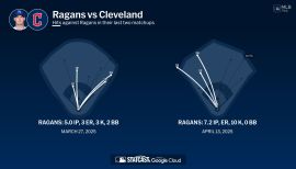 Ragans was Kansas City’s Opening Day starter in 2025 for the second straight season, but missed a combined 100 games due to two separate stints on the Injured List with a left rotator cuff strain (84 games) and a left groin strain (16)...Had 98 strikeouts in 61.2 innings for a 14.3 K/9 and 38.1 K%, both career highs, and the highest marks by any pitcher in the Majors in 2025 (min. 10 starts)...His 14.3 K/9 was the best single-season mark in Major League history (min. 10 starts), ahead of Tyler Glasnow in 2020 and Jacob deGrom in 2021 (14.28)...His 98 strikeouts set a club record for strikeouts through 13 starts to begin a season, besting Zack Greinke’s 97 strikeouts to begin his 2009 Cy Young Award-winning campaign...His career-low 2.42 FIP starkly contrasted his 4.67 ERA, and was the third-lowest FIP in the Majors (min. 10 starts), behind Shohei Ohtani (1.99) and Tarik Skubal (2.36)...Out of 184 pitchers who made at least 10 starts in 2025, the difference of 2.25 between Cole’s ERA and FIP ranked as the highest in the Majors, ahead of Trevor Williams (6.21 ERA, 4.21 FIP, 2.00 diff.), Bradley Blalock (9.36 ERA, 7.40 FIP, 1.96 diff.) and Zebby Matthews (5.56 ERA, 3.71 FIP, 1.85 diff.)...Induced a whiff on 57 of his 113 changeups that generated a swing in 2025, a staggering 50.4% whiff rate that led the Majors (min. 200 changeups), ahead of Joey Cantillo (49.4%)...Was the first left-hander to make consecutive Opening Day starts for the Royals since Danny Duffy in 2017-18...he also became the youngest Royal to start consecutive Opening Days since 27-year-old Jeff Suppan made his third of three consecutive Opening Day starts in 2002...Twelve pitchers who’ve had multiple Tommy John Surgeries in their careers have made Opening Day starts prior to a second procedure, but only Ragans and Texas’ Nathan Eovaldi have done so following their second operation, and Ragans and Eovaldi are just two of seven pitchers to undergo multiple elbow procedures and start multiple Opening Day games, according to Jon Roegele (roh-guh-lee) of Hardball Times/FanGraphs...Threw a career-high 7.2 innings on April 13 at Cleveland, and allowed two runs (1 ER) with no walks and 10 strikeouts in a 4-2 win...marked his third consecutive start with at least 10 strikeouts, becoming the second Royal to record 10 strikeouts in three straight starts, joining Kevin Appier, from Aug. 23-Sept. 3, 1996...Struck out 11 batters in five shutout innings vs. the White Sox on May 5, becoming the second Royal to record at least 11 strikeouts in five innings or fewer, joining Nate Karns, who recorded 12 strikeouts vs. Baltimore in five innings on May 13, 2017...Was reinstated from the IL on Sept. 17 and made three starts, over which he posted a 2.77 ERA (4 ER in 13.0 IP) with 22 strikeouts (15.2 K/9) and a .136 opponents’ average (6-for-44)...His final start came in the season finale on Sept. 28 at the Athletics, and he pitched 4.1 scoreless innings...Became the eighth pitcher in Royals history to start the first and last games of a season, per Elias, joining Zack Greinke (2023), Tim Belcher (1998), Kevin Appier (1993), Bret Saberhagen (1988), Dennis Leonard (1979), Paul Splittorff (1976) and Wally Bunker (1969).