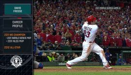game at 7-7, then hit a solo, walk-off home run in the 11th on a full count off Mark Lowe to win the game 10-9...When he hit his 11th inning solo walk-off home run to end Game 6 of the World Series, it marked the 15th walk-off home run in