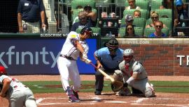 Made his MLB debut on Opening Day as Atlanta’s starting catcher...Proceeded to appear in 124 games, making 97 starts: 85 at catcher and 12 as the designated hitter...Slashed .274/.341/.469 (111-for-405) with 18 doubles, 19 home runs, 80 RBI and 38 walks...Logged an .810 OPS...NL. Rookie Ranks (min. 100 games): RBI (first, 80), slugging percentage (first, .469), OPS (first, .810), batting average (first, .274), home runs (second, 19), total bases (second, 190), OBP (third, .341)...From Sept. 16-22, logged an extra-base hit and an RBI in six straight games, both of which were the longest active streaks in MLB...Became the first rookie catcher in MLB history (since 1920) to record at least one extra-base hit and one RBI in six consecutive games...Since 1947, Baldwin is just the sixth rookie catcher (min. 51% of games) to reach 39 extra-base hits and 80 RBI, and the first to do so since Geovany Soto in 2008...Of the first five such catchers to reach those stats, four were named Rookie of the Year...Caught Chris Sale (373rd career appearance) in the season opener...The duo became the sixth Opening Day battery in the modern era (since 1900) to have as large a discrepancy in career games in which the catcher is debuting...The last such battery was Jamie Moyer (538 career app.) and Kenji Johjima (MLB debut) in Seattle’s season opener in 2006...Since 1995, just two other Atlanta rookie catchers have hit multiple go-ahead homers in a single season: William Contreras (three, 2021) and Jarrod Saltalamacchia (two, 2007)...Named the National League Rookie of the Month for May...Over 19 games (12 starts), he slashed .389/.411/.593 (21-for-54)...Among NL rookies with as many plate appearances in the month (56), he led the field by .134 points in batting average, 92 points in on-base percentage and 154 points in slugging percentage...Became the first Brave to earn the honor since OF Michael Harris II (Sept. 2022)...Became the ninth catcher, 11th instance, regardless of league, to win the award and second Braves backstop, joining Evan Gattis (April and May 2013)...Baldwin recorded 10 RBI in the Miami Series (Aug. 7-9), the most by any Braves rookie in a single series in the Atlanta era (since 1966)...Baldwin hit the second-most homers by an Atlanta rookie catcher, only trailing Earl Williams (33, 1971)...At 23 years, 364 days old, he became the youngest catcher to start their MLB debut in their club’s season opener since Hall of Famer Joe Mauer (20 years, 352 days) for Minnesota, April 5, 2004, versus. Cleveland...On Aug. 7, became the first Braves rookie catcher with a multi-homer game since Javy López in 1994...With five RBI, became the first rookie in Atlanta history (since 1966) with multiple five-RBI games in a season, and first since Rico Carty in 1964...From Aug. 7 through the remainder of the season, ranked third in Major League Baseball with 39 RBI...Didn’t strike out in 36 consecutive plate appearances from Aug. 19-31.