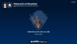 Finished the year 4-4 with a 4.75 ERA (32 ER, 60.2 IP) and 39 strikeouts...Four of his 12 starts were quality starts...He went 5.0+ innings in eight of his 12 starts...Earned his first Major League win in his first start of the season on April 1 vs. Cleveland...He pitched 5.1 innings and allowed three runs on four hits, one walk and one strikeout...Collected his first Major League quality start in a game vs. the Cubs on April 13...He pitched 6.0 innings and allowed two runs on four hits, no walks and four strikeouts...With Triple-A Tacoma, he had 17 starts with nine quality starts...Reached the sixth inning or later in 11 outings for the Rainiers...Made his first career Opening Day roster...Had five stints on the active roster in 2024...Was on the active roster between March 28-May 8, June 13, July 6-8, Sept. 13-22 and Sept. 28 to the end of the season...Returned to the rotation on Sept. 13 vs. Texas and made three starts in the last half-month of the season...In those games, he was 1-0 with a 4.70 ERA (eight ER, 15.1 IP) and 11 strikeouts...He did not allow more than three runs in any of those contests and the Mariners went 3-0 in those starts...Was named Pacific Coast League Pitcher of the Month for June...Went 1-0 with a 0.84 ERA (two ER, 21.1 IP) with seven walks and 17 strikeouts in four starts with Triple-A Tacoma...He led the PCL in WHIP (0.98), OBA (.187) and ERA (0.84) during the month...After allowing two runs in the first inning of June, he did not allow another run in his last 20.1 innings in June with Tacoma...On July 21, he pitched a complete game shutout, marking the first complete game shutout pitched for Tacoma since Casey Lawrence did it in 2018...He pitched nine innings and allowed nine hits, two walks and three strikeouts...It was the only nine-inning complete game shutout in Triple-A in 2024 and only one of two in the full-season Minor Leagues this year...It marked Hancock’s first professional complete game and first shutout...In eight games started at T-Mobile Park, he held a 3.61 ERA (17 ER, 42.1 IP) with 15 walks and 26 strikeouts...He allowed three or fewer runs in seven of the eight starts and went 5.0+ innings in five of them...On June 13 vs. CWS, he set a career high in innings pitched with 7.0...He finished the game with six hits, two runs, two walks and one strikeout...In 17 starts with Triple-A Tacoma, had a 3.43 ERA (36 ER, 94.1 IP) with 37 walks and 66 strikeouts.