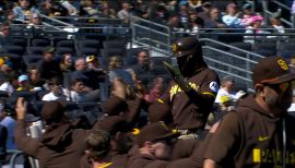 POSTSEASON: Played in all seven Padres' Postseason games between the Wild Card Series vs. ATL and the NLDS vs. LAD, batting .423 (11-for-26) with three doubles, four home runs, seven RBI, three walks and eight runs scored...had the highest average (.423), OBP (.500), SLG (1.000) and OPS (1.500) of any Padre in Postseason history with at least 30 plate appearances...In the NLDS alone, had an extra-base hit in four of the five games, batting .350 (7-for-20) with three doubles, three home runs, five RBI and six runs scored for a 1.359 OPS...his sole hitless game was in the decisive Game 5 of the NLDS at Dodger Stadium...with three home runs in the NLDS, finished one HR shy of the NLDS record: only Carlos Beltran (four in the 2004 NLDS with HOU) and Nick Castellanos (four in 2023 with PHI) had more...His 11 hits and four home runs in the Postseason led the Padres and were the most of any player on a club that failed to advance past the 2024 Division Series...Among all players in MLB Postseason history with at least 30 PA's, his 1.500 OPS in the 2024 playoffs was the fourth highest of any player in a single Postseason run, behind just Carlos Beltrán's 1.557 OPS in 2004, Barry Bonds' 1.559 OPS in 2002 and Manny Ramirez's 1.747 OPS in 2008...Has hit safely in 12 of his 13 career Postseason games...Between 2020 and 2024, his six HR and 12 RBI in that timeframe alone rank second all-time in Postseason franchise history, trailing only Manny Machado's seven HR and 13 RBI in the same timeframe...Seven of his 11 hits went for extra bases, tied with Manny Machado (also seven in 2022) for most extra-base hits by a Padre in a single Postseason in franchise history...Across his first five games in the 2024 playoffs, hit four HR without striking out once...the only other player in MLB history to have 4+ HR and zero SO over any five-game span in the Postseason was Lou Gehrig from 1928-32 (h/t @OptaStats)…Hit two home runs on Oct. 6 @ LAD in Game 2 of the NLDS, and it was his second-career Postseason multi-homer game (first was on Oct. 1, 2020 vs. STL)…he became the only Padre in club history to have two multi-homer Postseason games, and also became the first player in MLB history with two multi-homer Postseason games before turning 26...His double in Game 1 of the NLDS on Oct. 5 @ LAD was hit 118.9 mph off the bat, which marked the hardest hit ball of his career (regular or Postseason)…The 39 degree lunch angle on his home run in Game 1 of the Wild Card Series vs. ATL on Oct. 1 was his highest launch angle ever on a home run (regular or Postseason)…the home run was also the fourth anniversary of his first Postseason home run (hit two HR on Oct. 1, 2020 vs. STL at Petco in the Wild Card series vs St. Louis).