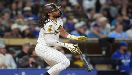In his fifth Major League season, hit .276 (110-for-398) in 102 games with 21 doubles, one triple, 21 home runs, 49 RBI, 64 runs scored and 11 stolen bases...in the 2024 Postseason, had the highest batting average (.423), OBP (.500), SLG (1.000) and OPS (1.500) of any Padre in Postseason history with at least 30 plate appearances...May 21 @ CIN, collected his 500th career hit...the last player to reach the 500-hit mark in as few games was teammate Luis Arraez (500th on May 17, 2023 in his 428th game)…at 25 years and 140 days old, became the third-youngest Padre to reach the 500-hit mark...was older than only Gary Sheffield (24 years and 170 days) and Tony Gwynn (25 years and 101 days old)...From May 21 to June 12, had a career-long 22-game on-base streak, and he collected a hit in 20 of those 22 games at a .348 clip with six doubles, five HR and 11 RBI...Had a career-long, 17-game hitting streak, batting .400 (28-for-70) from May 25 to June 11...had seven multi-hit efforts with five doubles, five home runs and nine RBI during the span, and it marked the longest hitting streak by a Padre since Adrian Gonzales' 17 consecutive games with a hit in 2006...Tied the Padres' franchise record by recording a hit in eight consecutive at bats with his third hit of the night in the fifth inning (from June 4-6)...it had been done five times prior, most recently by Kevin Kouzmanoff (Aug. 12-13, 2009)…From June 6-11, had six consecutive games with an XBH (three doubles and three HR)…was one game shy of matching his career streak of 7 consecutive games (2020)…Matched his career high with four hits on June 20 vs. MIL for the eighth time in his career, and second time this season (other: June 5 @ LAA)…Missed 57 games on the Injured List from June 24-Sept. 1 with a right femoral stress reaction...was placed on the 10-Day IL on June 24, transferred to the 60-Day IL on Aug. 21, and reinstated from on Sept. 2...on June 21 vs. MIL, exited the game in bottom of the fifth after sustaining a left triceps contusion after being hit by a pitch in the third inning...Was selected as a National League starter in the 2024 All-Star game, though he did not play due to injury (right femoral stress reaction)...it was his second All-Star selection (with his first being in 2021)…was one of five Padres to be selected to the NL All-Star team (also: Jurickson Profar, Jackson Merrill, Luis Arraez and Robert Suarez)…with him and Profar, the Padres had multiple fan-elected starters for the seventh time in team history, and the 1st since 1997 (Tony Gwynn & Ken Caminiti)…with Profar, Tatis, and Merrill, it was the first time the Padres have ever had three outfielders selected to an All-Star team...Had the lowest swing-and-miss percentage in a season in his career (28.1%), and his 38.1 percent of swings put in play was his highest in a single campaign...His .833 OPS was his highest since his .975 OPS in 2021...Struck out 96 times in 438 plate appearances, and his 21.9 strikeout percentage was the lowest in a season in his career...also drew just 32 walks, and his 7.3 walk percentage was also his lowest in a season...Logged his first career walk-off hit with his single to LF in the 10th on Sept. 5 vs. DET...later logged his second-career walk-off with a double to right in the 10th for a 3-2 win on Sept. 20 vs. CWS...Finished the season logging a hit in 13 of his last 16 games from Sept. 10-29 (.288 BA), and had an XBH in six of his last 10 games (five doubles and three HR).