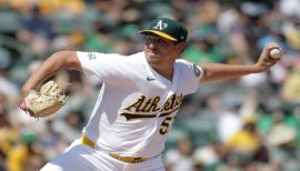 Was acquired from Tampa Bay with Jeffrey Springs during the offseason and went 7-7 with a 4.08 ERA and .721 opponents OPS in 21 games, including 17 starts, over three stints with the A’s after pitching in eight games over the previous two seasons with the Rays...Struck out 113 batters in 92.2 innings and his average of 10.97 strikeouts per nine innings was eighth highest in the Majors among pitchers with 90 or more innings pitched...did not have a wild pitch...Ranked seventh in the Majors among rookies in strikeouts, tied for eighth in wins and tied for 12th in games started...tied for third in most hit batters (eight)...Was 0-4 with a 7.20 ERA and .927 opponents OPS over his first seven games through June 8...then went 7-2 with a 2.17 ERA and .598 OPS over his next 13 starts from June 8 to Aug. 19 and had the third lowest ERA in the Majors over that span...allowed nine runs in two innings for the loss in his final start on Aug. 24 and missed the remainder of the season with a flexor strain in his left elbow...Had a .230 opponents batting average, which broke down to .216 (16-for-74) with a .612 opponents OPS against left-handed hitters and .234 (65-for-278) with a .750 OPS against right-handers...yielded 14 of his 15 home runs to right-handed hitters...has allowed 16 of his 17 career home runs to righties...Opponents hit .217 with runners in scoring position…they were 1-for-8 (.125) with a walk and six strikeouts with the bases loaded...As a starter, he had a .214 opponents batting average the first time through the lineup, .271 the second time and .143 the third time...Had a .099 opponents batting average with two strikes...Was 3-3 with a 2.64 ERA and .655 opponents OPS in nine games at home, 4-4 with a 5.40 ERA and .779 OPS in 12 games on the road...Had a 2-2 record and a 1.69 ERA in six interleague appearances…was 5-5 with a 5.05 ERA in 15 games against American League competition…was 0-3 with a 7.48 ERA in six games against the AL West...Pitched in relief in each of his first three appearances…17 of his final 18 outings were starts and in the one relief appearance, he tossed 4.1 innings in relief of an opener…was 7-6 with a 3.96 ERA and .698 OPS in 17 starts and 0-1 with a 5.19 ERA and .921 OPS in four relief appearances...Was 5-2 with a 3.19 ERA and .640 OPS in seven starts on exactly five days rest, 2-4 with a 4.56 ERA and .740 OPS in his other 10 starts...The A’s were 11-6 (.647) in his starting assignments…tossed five innings or fewer in 10 of his 17 starts…allowed one run or fewer in nine of his starts, including no runs six times...Also went 3-0 with a 2.33 ERA and .512 opponents OPS in six games, including four starts, with Las Vegas...Struck out 38 batters in 27.0 innings (12.67 per nine innings) and walked eight for a strikeout-to-walk ratio of 4.75...Had a .167 opponents batting average, including .145 (9-for-62) with a .490 OPS against right-handed pitchers and .206 (7-for-34) with a .552 OPS against left-handers...Opponents were 2-for-19 (.105) with runners in scoring position…they were 4-for-58 (.069) with two strikes, including 0-for-14 with 10 strikeouts on an 0-2 count.