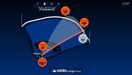 The distance behind JT Schwartz's home run