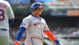 Concluded his 2022 campaign leading the Majors with 135walks and 34 multi-walk games...the next closest in total walks were Aaron Judge (111) and Max Muncy (90)....Finished the season ranked sixth in the Majors in OBP (.401)and eighth in the National League in OPS (.853)....On Sept. 21, drew his 500th career walk, becoming the first player since 1906 to walk 500 times before reaching the age of 24....Is 1 of just 3 players in Major League history to reach 500walks within their first 605 career games, joining Max Bishop (532 BB) and Ted Williams (513 BB) in the feat....Crowned the 2022 MLB Home Run Derby champion at Dodger Stadium, becoming the second-youngest player to win the competition....Since making his MLB debut in 2018 through 2022, Soto led the Majors in walks, ranked second in OBP and fourth in OPS....Reached base in 51 of his final 59 regular-season games(.401 OBP), despite going 48-for-202 at the dish (.238)....Over his final 17 regular-season games, hit .302 (19-for-63)with five doubles, three homers and nine RBI, including six multi-hit efforts during the span...in his 17 previous games from Aug. 27- Sept. 15, hit .107 (6-for-56) with a home run and three RBI....Won his third-consecutive Silver Slugger award after hitting 27 home runs and 25 doubles, while posting an .853 OPS....Selected as a Gold Glove Award finalist after turning in a.990 fielding percentage (3 E/310 TC) across an NL-leading 1298.1 innings among outfielders....Tied for second in the NL alongside Brandon Nimmo in games played (151), trailing just Jeff McNeil’s 154 games....Acquired on Aug. 2 with infielder Josh Bell from Washington in exchange for 1B/DH Luke Voit, SS C.J. Abrams, outfielders Robert Hassell III and James Wood, LHP Mackenzie Gore and RHP Jarlin Susana.