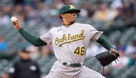 Began the season on the injured list with a knee injury, went 2-4 with a 5.17 ERA and .772 opponents OPS in eight starts with the A’s, and then finished the season on the IL with an elbow injury that led to “Tommy John” surgery...Struck out 32 batters in 40.0 innings but walked 20 for a strikeout-to-walk ratio of 1.60...Now has a 1.79 strikeout-to-walk ratio in his career (138 strikeouts, 77 walks, 149.2 innings)...Had five wild pitches and now has 16 in 149.2 career innings...Allowed a .276 opponents batting average, which broke down to .244 (20-for-82) with a .694 OPS against left-handed hitters compared to .311 (23-for-74) with an .859 OPS against right-handers...Yielded four home runs, three of which were solo shots...Was 1-1 with a 3.38 ERA and .664 opponents OPS in four starts during the day, 1-3 with a 7.23 ERA and .880 OPS in four starts at night...Was 0-3 with a 9.69 ERA in three starts on four days rest, 2-1 with a 3.00 ERA in his other five starts...Had no decisions and a 0.77 ERA in two interleague starts and was 2-4 with a 6.99 ERA in six starts against American League competition...Tossed six innings or fewer in each of his eight starts...Allowed one run four times and four runs or more four times.