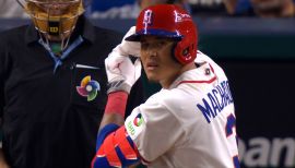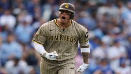 Originally signed with the Padres on Feb. 21, 2019 to a 10-year, $300-million contract through the 2028 season, which was the largest at the time for a free agent in MLB history... on Feb. 27, 2023, the Padres signed Machado to a new 11-year, $350M contract through the 2033 season, which at the time was the fourth-largest guaranteed contract in MLB history, behind only Mike Trout ($426.5M), Mookie Betts ($365M) and Aaron Judge ($360M)...Married to Yainee, who is the sister of former Padres first baseman and Yonder Alonso...the couple married in the offseason in 2014 in Angers, France, right outside of Paris...Yonder, whom Manny considers one of his best friends, introduced Manny to Yainee in 2009, when the three of them went to lunch one day after classes at the University of Miami...Yonder had taken Manny under his wing, and while they were training for the season together, Manny and Yainee became friends...in 2011, Yonder invited Manny to join them on a family vacation in Spain, and it was at that time when Yainee and Manny started dating...Established in 2022, Manny's Hot Corner hosts underserved youth throughout the season with t-shirts, game tickets, dinner and a meet-and-greet with Manny himself after batting practice...When he was 17, ate empanadas with then-teammate Bryce Harper while in Barquisimeto, Venezuela with the 2009 under-18 U.S. National Team for the Pan Am junior world championships. “Crushed them,” Machado said...Graduated from Brito Miami Private High School and was drafted third overall by the Orioles in 2010...Manny’s grandfather, Francisco Nuñez, had the largest impact on his passion for baseball...he passed away during his senior year of high school and Machado writes his initials (FN) in the infield dirt as he takes the field every game...Manny and Yainee have a dog named “Kobe” (named after Kobe Bryant).