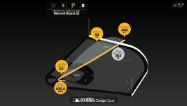 Awards: All-MLB First Team (DH), Louisville Slugger Silver Slugger (DH), Edgar Martinez Outstanding Designated Hitter of the Year, Baseball America All-MLB Second Team (OF)... N.L. Ranks: home runs (18, 1st), RBI (56, 1st), total bases (145, 1st), hits (77, 2nd), extra-base hits (32, T2nd), batting average (.338, 3rd), on-base % (.431, 3rd), slugging % (.636, 3rd), OPS (1.067, 3rd), AB/HR (12.67, 6th), walks (38, T6th) and fWAR (2.5, T10th)...He posted single-season career bests in each of the three slash line categories – batting average, on-base percentage, slugging percentage...He was one of 15 players and three Braves to appear in at least 60 games in 2020… Starling Marte played in a majors-most 61 games after beginning the season with Arizona and finishing the campaign with Miami…Freddie Freeman and Dansby Swanson also played in 60 games...Ozuna led the N.L. with 15 home runs and 56 RBI, becoming the first Braves player to lead the league in either home runs or RBI since 2005, when Andruw Jones also paced the circuit in both...Jones hit a franchise-record 51 HR and had 128 RBI...He was the first N.L. player to lead the league in both of those since Miami's Giancarlo Stanton in 2017 (59 HR, 132 RBI)...Extrapolated over a full 162-game season, Ozuna's totals paced to 49 home runs and 154 RBI...Ozuna also finished third in the N.L. in batting average, 13 points off the lead of the Nationals’ Juan Soto (.351)…He narrowly missed winning the batting triple crown, a feat that has not been accomplished by an N.L. player since St. Louis’ Joe Medwick in 1937 (.374, 31 HR, 154 RBI)...His 18 home runs traveled an average of a projected 429 feet, the farthest in the majors...The Braves hit 10 home runs over 450 feet in 2020, and Ozuna was responsible for four of them...His longest was a 469-foot home run off the Yankees' Gerrit Cole in Game 1 of a doubleheader on 8/26...That was the second longest homer of his career...He hit a single-game career-best three home runs on 9/1 at Boston, driving in six…He hit a two-run homer in the first inning, a solo shot in the seventh, and a three-run homer in the eighth...It was the 24th three-homer game by a Braves player in the franchise’s modern era (since 1900), and the first since Matt Kemp on 4/29/17 at Milwaukee... Teammate Adam Duvall would record a three-homer effort in the Braves' next game, 9/2...Ozuna was the 15th player from a visiting team with a three-homer game at Fenway Park, and the first to ever do so from a National League club...His six RBI were the most by a Braves player in a single game since 2008, when Jeff Francoeur drove in seven on 4/12 at Washington (3-for-5, 2 HR)...His second homer was the 1,000th hit of his career...Ozuna became the 60th Dominican-born player to reach that milestone, and one of 75 active major leaguers to have done so...His first home run with the Braves tied the game in the ninth inning on 7/25, driving a two-out, full-count pitch out to right-center field off the Mets’ Edwin Díaz…Atlanta would go on to win the game, 5-3, in 10 innings...Ozuna became the first Braves player to hit a go-ahead or game-tying homer with the team down to its final strike since 9/7/13, when Andrelton Simmons drove a 2-2, ninth-inning pitch from Jonathan Papelbon out to left field with a runner aboard to tie the game at 5...The Braves eventually lost that game, 6-5...The last player whose first home run for the Braves came with the team behind and either tied the game or put Atlanta ahead in the ninth inning or later was Brian R. Hunter, who hit a two-run, game-tying home run in the 11th inning against Philadelphia on 6/5/91...The following day, 7/26, Ozuna would hit his 150th career home run, off New York’s Corey Oswalt...His 56 RBI were the most by an Atlanta-era player (since 1966) in the first 60 games of a season, surpassing Andres Galarraga, who had 55 RBI in that period in 1998. The franchise's modern-era record is 57 by Wally Berger in 1935...Twenty-five of his RBI came with two outs, the most such RBI in the National League...Only New York-AL's Luke Voit had more (26)...Chicago-AL's Eloy Jiménez also had 25. Ozuna hit .333/.440/.619 (28-for-56) with two outs...Ozuna was a two-time National League Player of the Week...Received his first honor for the period of 8/31-9/6... Batted .464/.531/1.143 over seven games, going 13-for-28...His five homers tied for most in the majors, and his 13 RBI paced the league outright...Also won the award for the season-ending period of 9/21-27...Hit .500/.606/.923 (13-for-26) in seven games with three home runs, eight RBI and more walks (7) than strikeouts (4)...His .606 on-base percentage was the best in the N.L...San Diego's Manny Machado was the only other N.L. player to win multiple Player of the Week awards this season...Ozuna previously won three of these awards...Twice in 2017 with Miami, and once in 2018 with St. Louis...Ozuna hit a N.L.-best .394 (41-for-104) in September...His .488 on-base percentage (3rd) and .750 slugging percentage (3rd) in 26 games in the month both placed among N.L. leaders...Thirty-three of his RBI came in September, tying the Atlanta-era record for a calendar month...Freddie Freeman also had 33 last June...Freeman was second in the majors in RBI in September (32)...Only three other Braves have reached the 30 RBI mark in a month since the franchise relocated to Atlanta in 1966 (Bob Horner, 32 in July ‘80; Mark Teixeira, 32 in August ‘07 and Dale Murphy, 30 in August ‘86)...Ten of Ozuna's home runs came in the month...Only three other National Leaguers (Pete Alonso, Adam Duvall and AJ Pollock) reached double-figures in home runs in September...He had the best average exit velocity (93.0), hard-hit rate (54.4%), barrel rate (16.0%) and walk rate (14.2%) of his career...His hard-hit rate (batted balls with an exit velocity over 95 mph) was ninth best in the majors, while his average exit velocity tied for 10th best...Hit a 115.6 mph doub