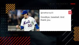 Underwent Tommy John surgery on October 22, 2013 to repair a partial tear of the ulnar collateral ligament in the right elbow...Dr. James Andrews performed the procedure in Gulf Breeze, FL... Has the second-best WHIP (0.98) of any pitcher since 1921 in his first 36 career starts...The only other pitchers since 1921 that had a WHIP under 1.00 through 36 starts were Vida Blue (0.94), Orel Hershiser (0.99) and Jim Hardin (0.99)..His 4.58 K/BB ratio ranks fifth since 1921 in a pitcher's first 36 starts...His 2.39 ERA is the 12th-best mark through 36 starts... Became the fifth pitcher to start an All-Star Game less than a year after his major league debut...He became the fourth pitcher in club history to make the All-Star team in his first full season in the majors...Joined Tom Seaver (1967), Jerry Koosman (1968) and Dwight Gooden (1984)...He became the third Mets pitcher to start an All-Star Game...Gooden started the 1988 All-Star Game at Cincinnati and the 1986 Game at Houston...Seaver started the 1970 All-Star Game in Cincinnati...He was the first major league pitcher to start an All-Star Game in his home park since Roger Clemens in 2004 in Houston... Tossed 2.0 scoreless innings and struck out three during the All-Star Game...The three strikeouts were the most by a Mets pitcher in an All-Star Game since Sid Fernandez also had three strikeouts in the 1986 All-Star Game... Voted National League Pitcher of the Month for the month of April...Recorded four victories (4-0) in six starts, tying him for first among NL pitchers...Only one of two NL starters to post four wins in April without suffering a loss (also Lance Lynn)...His 1.56 ERA (seven earned runs/40.1 innings) ranked third in the NL, his 46 strikeouts were tied for fourth... Finished third in the majors with a 2.27 ERA (45 earned runs/178.1 innings), 6.16 strikeouts per walks ratio, .282 opponent slugging percentage and .530 OPS...Ranked second in the majors with a 0.93 WHIP, .248 opponent on-base percentage and 8.58 baserunners per nine innings...Ranked third in the National League and sixth in the majors a 9.64 strikeouts per nine innings...Sixth in the majors with 1.56 walks per nine inning rate...Finished seventh in the majors with a 6.81 hits per nine innings...His 191 strikeouts ranked first in the NL and fourth in the majors on August 24, the date of his final start...His opponent OPS is the 12th-best single-season mark since 1969... Since his debut on July 26, 2012, has the majors' third-best: ERA (2.39); WHIP (0.98), strikeouts per nine innings (9.88), opponent slugging (.296), opponent OPS (.556) and baserunners per nine innings (9.13)...His opponent on-base percentage (.260), opponent batting average (.207) and hits per nine innings (6.39) are fourth best in the majors...His home runs per nine innings (0.45) is the second-best rate in the majors... Named the National League Player of the Week for the week of April 8-April 14, his first career honor...Went 2-0 with a 1.20 ERA (two earned runs/15.0 innings) during the week... Allowed five hits, issued four walks and struck out 15... In his four starts between September 19, 2012 and April 13, 2013, he became the first pitcher with four straight starts of 7.0 or more innings and three or fewer hits allowed since July, 2004...The feat has only been pulled off five other times since 1916: Johan Santana (five straight games) in 2004, Nolan Ryan (five straight games) in 1976-1977, Woody Williams in 2001, Kevin Millwood in 1999 and Roger Clemens in 1998... Retired the first 20 batters he faced against Chicago-AL at Citi Field on May 7...The 6.2 perfect innings are tied for the thirdlongest streak in team history...The last Mets pitcher with 6.2 perfect innings was Rick Reed on June 8, 1998 vs. Tampa Bay...Tom Seaver pitched 8.1 perfect innings on July 9, 1969 and 7.0 perfect innings on August 30, 1968...In the game, he became the third Mets pitcher to allow only one baserunner in 9.0 innings of work...Tom Seaver (July 9, 1969 vs. the Cubs) and Jonathon Niese (June 10, 2010 vs. the Padres) are the other two...Became the first player in the modern era (since 1900) to pitch 9.0 innings with 12 or more strikeouts, allowing no walks and only one hit to receive a no-decision... Took a no-hitter into the seventh inning three times this season: April 13 at Minnesota, May 7 vs. Chicago-AL and June 18 at Atlanta...Only three other pitchers during the expansion era held an opposing team hitless through 6.0 innings three times in the first 25 starts of their career: Al Downing, Jose DeLeon (four times) and Kent Mercker... Joined Dwight Gooden as the only starters since 1916 to allow one run or fewer in 19 of their first 36 career games...Harvey has struck out six or more batters in each of those 19 starts...His 14 starts in which he has allowed one run or fewer was tied for the fifth-most in the majors... Ended the season by pitching 54.1 innings and facing 213 batters since allowing his last home run (Buster Posey on July 8)...Only Mark Melancon had more consecutive home run-less innings this season (63.0 innings)...Went 33 straight starts without allowing multiple home runs...Only Jhoulys Chacin has had a longer such streak since 2012 (currently at 40 starts)...Anibal Sanchez also currently has a 33-game streak...It matches the longest such streak by a Mets starter since 1991...Also Mike Hampton in 2000 and Dwight Gooden in 1992... Recorded his fourth straight start of 7.0 innings or more and one run or less on April 19 vs. Washington...The last pitcher to open the season with such a streak was Tim Hudson in 2007...Hudson also went four straight games...The last Mets pitcher to do so was Rick Reed in 2000; he also went four straight...Became the third pitcher since 1916 to begin a season with four consecutive starts of 7.0 or more innings while allowing four or fewer hits... The two other pitchers with such an open were Ken Hill for the 1993 Expos and Nolan Ryan for the 1979 Angels... Was unb
