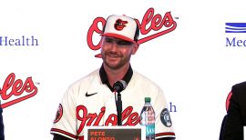 Peter Morgan Alonso graduated from Plant High School (Fla.), the same school as Hall of Famer Wade Boggs...Recipient of the 2013 Wade Boggs Athletic Achievement Award, based upon outstanding athletic skills, academic achievement and good sportsmanship...Turned in a high school batting average of .460 (116-for-252) with 99 RBI...Named the Joe DiMaggio Toast of the Town and Ben Epstein-Dan Castellano Good Guy Award winner for 2019 by the New York chapter of the BBWAA...Attended University of Florida...Was named to the 2015 SEC All-Tournament Team as a sophomore and was a 2016 Dick Howser Trophy Semi-Finalist as a junior...Was a NCBWA first-team All America, Perfect Game/Rawlings first-team All America, ABCA/ Rawlings second-team All America, a Baseball America third-team All America and an All-SEC second-team selection during his junior season...As a junior, led the SEC with a .659 slugging percentage and ranked fourth with a .374 average (79-for-211)...Tallied 60 RBI and 51 runs scored...Hit .500 (16-for-32) in the 2016 NCAA Tournament with five homers and 13 RBI...Was named the Most Outstanding Player of the Gainesville Regional...Selected by the New York Mets in the second round (64th overall) of the 2016 First-Year Player Draft...Re-signed with the Mets as a free agent during the 2024-2025 offseason...Enters 2025 ranked third on the club's all-time home run list with 226 (trails Darryl Strawberry, 252; David Wright, 242)...Was given the nickname "Polar Bear" by Todd Frazier during Spring Training in 2019...Is a big Jerry Seinfeld fan and has met the comic several times... Seinfeld awarded Alonso the Jackie Robinson Rookie of the Year Award at the 2019 BBWAA annual awards dinner in New York...Started The Alonso Foundation with his wife Haley...Their Homers for Heroes initiative was started during the COVID-19 pandemic... Alonso says "Homers For Heroes basically brings people to light that are absolutely going above and beyond their call of duty... What I want to do is help people that are helping others that are kind of in the shadows"...As part of his foundation, sponsored the training of a service dog in 2023 named Bear to be partnered with a veteran in need of a service dog...Sponsored a dog in 2024 as well...The Alonso Foundation focused on animal rescue in 2024... For every home run Alonso hit, $1,000 was donated to various programs helping remove animals (especially dogs) from kill shelters as well as providing toys and pet supplies for those animals' eventual owners...Introduced The Love of the Game initiative in 2023…Several area organizations received grants from The Alonso Foundation along with 50 tickets plus food to an upcoming Mets game... Each organization distributed the tickets to their youth and family beneficiaries, many of whom have never been to a game, as well as receiving a grant via check presentation on-field before the game…Among the groups honored were Castle Hill Little League in the Bronx, Answer The Call, supporting families of fallen first responders, Rockaway Little League and Cadets Baseball Club and North Shore Animal League...The Alonso Foundation hosted Pete Alonso's Battle for the Bay at Plant High School in January 2023 and 2024...The event includes a youth home run derby and appearances from major leaguers...Attendees have included: All-Stars Randy Arozarena and Shane McClanahan, fellow Plant HS alum Kyle Tucker and longtime Tampa Bay Ray Carlos Peña...The Alonso Foundation plans to refurbish fields and supply needed equipment to Interbay Little League as part of the organization’s efforts to give back to the community...During Spring Training in 2021, created an NFT and auctioned it off to benefit More Than Baseball, a nonprofit dedicated to supporting minor leaguers who need financial support with housing, equipment and nutrition...The NFT was designed by former Mets minor leaguer Tommy Wilson...In 2021, Alonso hosted The Battle of the Boroughs presented by Citi at Maimonides Park, the home of the Brooklyn Cyclones...Fans watched top youth baseball players from around NYC compete in a home run derby...All proceeds benefited the Homers for Heroes foundation...During the 2020 season, his foundation honored a hero after each of the Mets' 60 games...Each hero received a care package, which included game-used memorabilia from Alonso...Participated in a Fanatics auction during the pandemic, offering a private fishing charter which raised $70,000 towards Feeding America, Meals on Wheels, World Central Kitchen and No Kid Hungry...Used a custom-designed bat during the 2019 All-Star week and Players' Weekend, named "Haley's Comet" in honor of his then-fiancée...Using that bat, won the Home Run Derby...Hit his 41st home run of the 2019 season with the bat, tying the Mets' single-season record...Designed custom-made, 9/11-themed cleats for himself and his teammates for the Mets' home game on Sept. 11, 2019 vs. Arizona...Donated the cleats to the National September 11 Memorial & Museum on Oct. 1, 2019...Wore special cleats again in 2021 and 2023...In 2019, he donated 10 percent of his $1 million Home Run Derby winnings to charity, giving $50,000 to Wounded Warrior Project and $50,000 to the Stephen Siller Tunnel to Towers Foundation...In 2021, he donated a portion to his Homers for Heroes foundation...Participated in the 2023 World Baseball Classic for Team USA...Batted .143 (2-for-14) over five games.