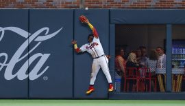 In 12 postseason games, hit .217/.333/.370 (10- for-46) with four doubles, one home run, three RBI, seven walks and 10 runs scored...His four doubles were the most by a Braves outfielder in a single postseason...Started Atlanta’s first six games in center field and the club’s final six games in right field. His only home run led off Game 1 of the Division Series, off Miami’s Sandy Alcantara…At 22 years, 293 days, became the youngest player in baseball history to hit a leadoff homer in a postseason game...It was the fourth such homer in Braves postseason history…Bill Bruton first did so in Game 2 of the 1958 World Series, and it was later matched by Marquis Grissom in Game 2 of the 1995 Division Series and Marcus Giles in Game 2 of the 2001 League Championship Series...Acuña Jr. was the first Atlanta player to step to the plate in the series…He is the 13th player in history to start a postseason series with a home run in the team’s first plate appearance…The last player to do so was Tampa Bay’s Yandy Díaz in the 2019 A.L. Wild Card Game...Went 6-for-15 (.400) with three extra-base hits (2 2B, 1 HR) in the first three games…Over the last nine contests, had just four hits in 31 at-bats (.129) with two extra-base hits, both doubles, and one RBI... Played through lingering left wrist soreness.