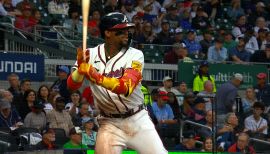 Listed No. 1 on MLB Network’s “Top 100 Players Right Now” list...Ranked 25th, entering 2023...27-year-old Ronald Acuña Jr. completed his seventh Major League season (all with Atlanta), posting a slash line of .250/.351/.365 (48-for-192) in 49 games...He hit four home runs, eight doubles, and one triple while recording 15 RBI and 38 runs...Went 16-for-19 in stolen base attempts...Made his fifth career Opening Day roster (2019-21, ‘23-24), all with Atlanta...Has started on Opening Day five times, doing so in left field once (2019) and right field four times (2020-’21, ’23-24)...Started 49 of the club’s first 50 games in right field, batting leadoff in each contest...Was placed on the injured list on May 27 with a torn left ACL...Missed the club’s final 112 games of the season...Was not included on the club’s Wild Card Series roster...At the time of his final game of the season (May 26), he ranked top-10 in the Majors in stolen bases (T-4th, 16) and runs (T-9th, 38)...Led the club with 16 stolen bases...He’s paced Atlanta in swipes in each of the last three seasons: 2022 (29) and 2023 (74)…Hit each of his four home runs on the road: April 17 at Houston, May 3 at Los Angeles (NL), May 10 at New York (NL) and May 24 at Pittsburgh...Stuck out 55 times in 222 plate appearances (23.9%), more than doubling his strikeout rate from 2023 (11.4%, 80 in 735 PA)…Recorded two hits and a stolen base on March 29 at Philadelphia...Became the first player in the franchise’s Modern Era (since 1900) with multiple hits and a stolen base in consecutive season openers (also: March 30, 2023 at Washington) and the first player, league-wide, since Nyjer Morgan (2009 with Pittsburgh and ‘10 with Washington)…Matched his career high with three stolen bases on April 9 vs. New York (NL)...Became the 13th player in the franchise’s Modern Era (since 1900) to have multiple outings with at least three stolen bases, also: April 22, 2023 vs. Houston...In the last 25 seasons, Jordan Schafer is the only other Brave to do so (September 2, 2013 vs. New York-NL and July 11, 2014 at Chicago-NL)…After singling in the first inning, April 22 vs. Miami, proceeded to steal second base, the 190th of his career, all with the Braves...Surpassed Rafael Furcal (2000-05) for the most by any player in the Atlanta era (since 1966)…Since the modern-day definition of a stolen base was established in 1898, he’s tied with Fred Tenney (196) and trails Hall-of-Famer Henry Aaron (240) for the most swipes in franchise history...Reached base safely to lead off the game in nine straight contests, spanning April 16-26, matching his own run (August 11-18, 2018) for the longest such streak by a Brave in the Expansion Era (since 1961)…Scored his then-major league-leading 30th run of the season May 3 at Los Angeles (NL)...Became the sixth player, seventh instance, in the franchise’s Modern Era (since 1900) to eclipse 30 runs within the club’s first 30 games in a season...Joined Tommy Holmes (1945), Hall-of-Famers Henry Aaron twice (1957, 1970) and Eddie Mathews (1959), Rico Carty (1970) and Ozzie Albies (2018)...League-wide, he’s the first player to do so since Cody Bellinger in 2019 with Los Angeles (NL)...They broke the scoring with a solo home run in the third inning on May 10 in New York (NL)...Per Statcast, the blast traveled 461 feet, the longest by a Brave during the 2024 season...Since his debut season in 2018, he’s hit 22 home runs of at least 450 feet, tied for the Major League lead, along with Los Angeles’ (NL) Shohei Ohtani...Tripled to lead off the game May 20 vs. San Diego (G2)...Marked the 18th triple of his career and third as Atlanta’s first batter in a game, also: Aug. 2, 2018, at New York (NL) and Sept. 3, 2019, vs. Toronto.