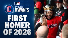 A torrid first half garnered his first AL All-Star selection, becoming the first Cleveland batter to enter the All-Star break leading the Majors in average since Lou Boudreau in 1947 (.347), taking a mark of .352 (99-for-281, 69 games) into the break…Earl Averill is the only other player in club history to lead MLB in batting average (.373, 1938) at the All-Star break besides Kwan and Boudreau...His .352 mark tied for eighth in franchise history (with Bill Knickerbocker) and was the highest by a Clevelander since Roberto Alomar in 2001 (.358)...Got off to a hot start, batting .350 (35-for-100) in April and hitting .353 (47-for-133) over his first 32 games (28 RS) before suffering a left hamstring strain on May 4 vs. the Angels, forcing him on the IL for more than three weeks...At the time was leading the AL in average, hits and multi-hit games (tied for first, 14)...Upon returning from the IL he hit .351 (52-for-148) with 27 runs over his final 37 games of the first half...Entered the break first in MLB in average and fourth in on-base percentage (.407)...His 79 hits over his first 50 ind. games were the most since Dee Strange-Gordon (79 in 2015)...Cooled off in the second half, batting .206 (41-for-199) in 53 games (.316/.302/.618)...Hit the reset button in mid-September, spending 12 days on the IL (9/14-9/25) with mid-back inflammation, reaching in five of his last eight plate appearances, leading into what turned out to be another productive postseason...Hit a combined MLB-best and single-season club-record .381 (16-for-42, 10 RS) in 10 postseason games, reaching in 22 of 48 plate appearances (.458 OBP)...Broke a club record with a 12-game hit streak snapped dating back to the 2022 ALDS (Game 1) in Game 3 of the ALCS vs. NYY, going 22-for-50 (.440, 10 R) over the span...Broke Kenny Lofton's 1995 streak of 10 games...Career postseason average of .347 (25-for-72) is the third-highest mark this century (min. 75 PA) and is the highest mark in club history...His 11 hits in the ALDS were a new club record (tied for third all-time, record is 12)...Owns an active 16-game on-base streak in the postseason and his 25 hits through his first 17 postseason games are a franchise record...Notched his third straight Rawlings Gold Glove, recording 10 DRS, becoming the fifth player in MLB history to win a Gold Glove in each of his first three seasons, joining Johnny Bench (1968-70), Charles Johnson (1995-97), Nolan Arenado (2013-15) and Ichiro Suzuki (2001-03)...Finished fourth among AL left fielders in DRS (10) and second with nine outfield assists…His 24 outs above average lead MLB left fielders and 47 defensive runs saved since 2022 lead all MLB outfielders…The last Cleveland OF to win three straight Rawlings Gold Gloves was Kenny Lofton (1993-1996)...Kwan reached base safely in 25 straight games from April 23-June 20, the longest on-base streak by a Clevelander since Carlos Santana reached safely in 30 straight games from June 4-July 12, 2019…After Kwan returned from the injured list on May 31, he went on a 14-game hit streak, the longest hit streak by a Clevelander this season and the second-longest of his career (18 games, July 14-Aug. 4, 2022)...Batting average reached a high-water mark of .398 (70-for-176) on June 16…Became the third Clevelander to hit .398 or better through the club’s first 69 games of a season (min. 150 PA), joining Tris Speaker (.405, 1921) and Joe Jackson (.414, 1913; .398, 1912)...Kwan was the fifth MLB hitter since 1990 to amass 70 or more hits through their first 43 games of a season and first player to turn the trick since Ichiro Suzuki (73 hits) in 2001...Enjoyed a streak of 74 plate appearances without a strikeout from April 15-May 4, the longest by a Clevelander since Omar Vizquel in 1996 (76 PA) and the second-longest streak by a hitter in 2024 (Luis Arraez: 141 PA, Aug. 10-Sept. 16)...Later posted a streak of 44 plate appearances without a strikeout from June 8-19…Kwan finished this season with a swing and miss rate of 8.2%, the best mark in the AL and second-best mark in MLB, trailing only SD’s Luis Arraez (6.8%)…Since his debut in 2022, Kwan’s 9.6% ranks second in MLB behind Arraez (7.3%)...Recorded seven three-hit games through Cleveland's first 32 games, becoming the eighth player in club history with seven or more three-hit games through the club’s first 32 games and first since Joe Carter (seven games) accomplished the feat in 1988…Kwan led the club with 13 three-hit games this season…His 40 three-hit games since 2022 are tied for fifth in MLB...Launched a career-high 14 home runs, surpassing his career total of 11 in one season…The Guardians went 13-1 in games when Kwan homered...Led MLB with a .318 (54-for-170) batting average when behind in the count, ahead of SD’s Luis Arraez (.302, 85-for-281).