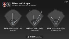 After signing a five-year contract extension on March 29, Bibee turned in another solid season for Cleveland, setting a career-high in innings (182.1IP), while tying career-highs in wins (12), starts (31) and quality starts (12)...Became the first Cleveland starter to make 30-or-more starts in consecutive seasons since Carlos Carrasco in 2017-18...Additionally, he became the first Cleveland pitcher to win 10+ games in each of his first three campaigns to start his career since CC Sabathia from 2001-03, and the first Guardians right-hander to turn the trick since Dennis Eckersley from 1975-77...Was named Opening Day starter for the first time in his career; however, he was scratched from the outing due to acute gastroenteritis...Eventually made his first start in the third game of the season, firing 5.2 shutout innings on March 30 at Kansas City, en route to the win...Finished the first half with a 5-9 record and a 4.29 ERA (52ER/109.0IP)...Earned a season-high five-straight winning decisions from July 12-August 14...Ignited a stretch where the right-hander recorded the win in eight of his final 10 decisions…Worked six or more innings in his final sx starts from August 25-September 24, the longest such streak of his career...During that stretch, his 40 innings of work were second-most in the American League, slightly trailing New York-AL’s Max Fried…In his final four outings, Bibee went 3-0 with a 1.30 ERA (4ER/27.2IP), firing four quality starts...His 1.30 ERA in September led the American League and ranked second in MLB behind Los Angeles-NL’s Yoshinobu Yamamoto (0.67)...Worked two complete games, including a complete game shutout on Sept. 12 vs. Chicago-AL (9IP, 2H, 0R,HB, 0BB, 10K, 103P)…According to Opta STATS, Bibee's shutout broke a streak of 888 team games (including regular season & Postseason) for Cleveland without a pitcher shutout, which was the third-longest streak in the Majors, behind Washington (982) and Tampa Bay (1,503)...Became the first Cleveland starter to have multiple complete games in a single season since Shane Bieber in 2019... The two-hitter was the first by a CLE P since Zach Plesac 9/10/19 at LAA, while it was the first complete game shutout by a CLE pitcher at home since Bieber (5/19/19 vs BAL)...Became the fourth pitcher in franchise history to throw a complete game shutout while allowing two or fewer hits, no walks and 10+ strikeouts, joining Josh Tomlin (2014), Len Barker (1981, perfect game) and Stan Williams (1968)...The right-hander went 8-0 with a 2.32 ERA (17ER/66.0IP) against AL Central opponents in 2025...His eight wins in divisional play were tied with Boston’s Garrett Crochet (8-1) for the most wins by any MLB pitcher vs. his own division...Cleveland finished 11-0 against divisional opponents when Bibee got the starting nod...Bibee surrendered a career-high 27 home runs this season, tied for the sixth-most in the AL…However, he did not allow a home run in his final three starts and allowed just two roundtrippers across his final five outings…Bibee fashioned a 0.83 HR/9.0IP in 14 starts at Progressive Field, compared to a 1.79 HR/9.0IP in 17 starts on the road...Cleveland is 54-33 all-time when the righty takes the mound in his career (regular season only)...Bibee’s 54 team wins through his first 87 starts are third-most in franchise history, behind Jaret Wright (55) and Shane Bieber (58)...Since the start of last season, the Guardians 40 wins when Bibee starts are the fourth-most in MLB, behind Philadelphia’s Cristopher Sánchez (41), Toronto’s José Berríos (41) and Detroit’s Tarik Skubal (42)...Made his fifth career Postseason start in AL Wild Card Series Game 2 allowing one run (earned) over 4.2 innings in Cleveland’s 6-1…Owns a 3.10 ERA (7ER/20.1IP) in five career Postseason starts with Cleveland going 3-2 in those games.