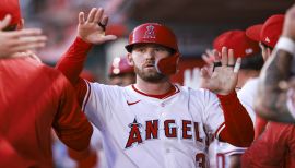 Batted .246 (144/585) in seventh season with Angels and set career highs in runs scored (tied; 73), doubles (26), home runs (25), RBI (75), stolen bases (six) and walks (63)...Led Angels in hits (144), home runs (25), total bases (249), runs (73) and triples (two; tied)...In September, collected a hit in 20 of 26 games played and batted .286 (28/98) with 17 runs, two doubles, seven home runs, 15 RBI and a .906 OPS...Fom Aug. 1 to the end of the season, recorded a hit in 42 of 51 games played and batted .284 (56/197) with 25 runs, eight doubles, two triples, nine home runs, 21 RBI, with a .835 OPS to finish the season...Led Halos in batting average, wRC+ (135) and OPS during that span...Had 21-game on-base streak from Aug. 20-Sept. 11, was second-longest of career behind a 27-game streak from April 19 - May 20, 2022...Longest on-base streak by an Angel this season...Led Angels with five leadoff home runs; Most leadoff HR in a season by an Angels player since Mike Trout (five) in 2012...Had career-high 14-game hitting streak Aug. 20 - Sept. 4; batted .327 (18/55) with 10 runs, three doubles, two triples, five home runs, eight RBI and a 1.094 OPS during the streak...Tied for longest by an Angel in 2024 (Kevin Pillar; May 11-June 1)...Had eight hitting streaks of at least six games...Connected on fourth career grand slam on July 28...First since May 14, 2022 at OAK (two)...Homered in back-to-back games five times; Homered in three consecutive games on two occasions (Sept. 1-4; May 15-18)...In June, led all left fielders with seven Defensive Runs Saved (Sports Info Solutions).
