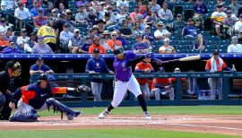 After being acquired by the Rockies on March 22, led the team in batting (.281) and OBP (.354) … marked the highest OBP for a Rockie since Nolan Jones (.389) and Charlie Blackmon (.363) in 2023 (min. 400 PA)...Acquired by Colorado via trade with Cleveland in exchange for outfielder Nolan Jones on March 22...Set career highs in plate appearances (428), at-bats (377), runs (50), hits (106), doubles (20), triples (2), stolen bases (18) and walks (34)...Career-long 25-game on-base streak from June 13-July 12, the longest by a Rockie since Elehuris Montero’s 26-game streak in 2023...Career-long 12-game hitting streak from June 13-25 … slashed .390/.490/.439 (.929 OPS) with two doubles, four RBI and two stolen bases while striking out twice during the streak … was the Rockies’ longest hitting streak of 2025, the longest since Ezequiel Tovar’s 17-game streak July 9-31, 2024...Reached base safely in 34 consecutive starts May 30-July 13 … the longest streak by a Rockies starter since Jurickson Profar’s 37-game on-base streak April 15-May 30, 2023...11.9% strikeout rate tied for eighth-lowest in the NL (min. 400 PA) … 12.5 whiff percentage was the eighth-lowest in the Majors … 34 strikeouts in 240 plate appearances in the second half after striking out 17 times in 188 plate appearances prior to the All-Star break...Became one of three Rockies all-time (fifth instance) to record 51 or fewer strikeouts while logging 425 or more plate appearances, joining Juan Pierre (2001) and Eric Young Sr. (1993, ‘96, ‘97)...Went 40 plate appearances without a strikeout May 30-June 13, fanning in the fifth inning against Spencer Strider on June 14 to break the streak...12 games without a strikeout (May 30-June 13) was the longest single season strikeout-less streak for a Rockie since Jose Iglesias’ streak of 55 plate appearances (Aug. 6-25, 2022)...Eight three-plus hit games were second-most on the club trailing Hunter Goodman’s 12 three-hit games...Started 60 games in right field, 26 games as the DH and 12 games at second base ... appeared in one game at third base and one in left field ... prior to 2025, had never appeared in a Major League game in right field ... had appeared in one Major League game in the outfield prior to 2024...Slashed .378/.391/.578 (17-for-45) with a .969 OPS, two home runs and eight RBI on the first pitch of an at-bat...Hit .303 (23-for-76) with five doubles, one home run and 28 RBI with runners in scoring position, the second-highest average with RISP on the club behind Mickey Moniak’s .333 average (min. 80 PA)...Hit .291/.364/.374 (99-for-340) with 18 doubles, two triples, two home runs, 28 RBI and 15 stolen bases in 93 games from May 30 through the end of the season … seventh-best batting average in the NL over that span (min. 380 PA)...His .827 OPS pre-All-Star break was the 10th-highest among all NL players with one or fewer home runs before the break since 1933 (min. 180 PA)...Three hit-by-pitches June 17 at Washington set a franchise record and tied the MLB record … second player in MLB history to record one hit, one walk and be hit by a pitch three times in the same game, joining the Giants’ Ron Hunt, April 29, 1969 vs. Cincinnati...Second home run of the season on Aug. 16 vs. Arizona (also: June 1 at NYM), a 434-foot shot that was the longest of his career...On the 10-day injured list from April 13-May 15 with a strained left oblique … missed the last seven games of the season with lower back tightness.