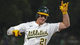 Hit .233 with nine home runs, 26 RBI and a .743 OPS in 61 games with the A’s after batting .160 with three home runs, seven RBI and a .472 OPS in 45 games in his Major League debut in 2023...Spent the first month of the season at Triple-A Las Vegas and had a two-month stint on the injured list from July 10 to Sept. 13 with a left wrist bone bruise...Made 49 of his 53 starts in games in which the opponent started a right-handed pitcher...hit .225 with all nine of his home runs, 23 of his 26 RBI and a .741 OPS against right-handers... weas 6-for-20 (.300) with a .764 OPS against left-handers...has hit all 12 of his career home runs off right-handers...Connected for seven of his nine home runs on the road...six were solo shots...Batted .160 with runners in scoring position and is a .153 career hitter with RISP...Had four home runs in 14 interleague games, five in 47 games against the American League...Hit .117 with two strikes...Made all 53 of his starts at first base...also appeared in one game at catcher (started 21 games at catcher, eight at first base and four at designated hitter with Las Vegas)...Was 0-for-3 with two walks and a RBI as a pinch hitter...Started games at every spot in the order except leadoff...saw his most action with 24 starts batting fifth...Batted .279 with 10 home runs, 27 RBI and a .991 OPS in 33 games with Las Vegas...Of his 34 hits, 19 (55.9%) were for extra bases (eight doubles, one triple, 10 home runs)...Hit .324 (11-for-34) with a 1.159 OPS against left-handed pitchers, .261 (23-for-88) with a .926 OPS against right-handers...eight of his 11 hits off southpaws were extra base hits (four doubles, one triple, three home runs)...Had a .367 average with runners in scoring position...connected for seven of his 10 home runs with runners on base...Opponents were successful in 31-of-35 (88.6%) of their stolen base attempts with him behind the plate...Was 7-for-13 (.538) with three home runs and eight RBI as the designated hitter...Made 18 starts batting clean-up, nine hitting second, five in the three spot and one batting sixth.