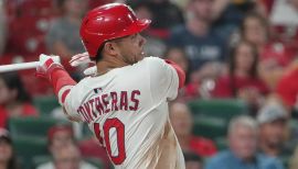 NL Ranks: Hit by Pitch (12, T-eighth)...Missed a combined 72 games due to fractures to his left arm (May 8-June 23) and right middle finger (Aug. 25-end of season)...Finished 3rd on the Cardinals in bWAR (3.0) despite appearing in only 84 games...His team-leading 138.7 OPS+ was a new single-season career high and ranked 24th-best in MLB among players to appear in 81+ games...Ranked seventh in walk percentage (12.6%) among Major Leaguers with 350+ PA (also a career best)...Among Major Leaguers with 500+ competitive swings, boasted the 13th-fastest average bat speed (75.9 mph) according to Baseball Savant...Batted .291/.412/.525 (52-for-179) with 11 homers and 26 RBI in 51 games as a catcher. Among Major Leaguers with 215+ plate appearances while at catcher, ranked first in on-base percentage, slugging, OPS (.937), and secondary average (.413), second in BABIP (.366), and fourth in batting...Appeared in 33 games as the designated hitter, batting .223/.333/.388 (27-for-121) with four HR, 10 RBI...Enjoyed a career-high 14-game hit streak (.347/.467/.592) from April 1-21...Slugged team-leading .538 in 21 interleague games, 13th-highest in the NL...Produced a .907 OPS in 42 road games and .936 OPS in 48 night games. In 23 road night games, batted .341/.420/.648 with a 1.068 OPS, third-highest in MLB among players with 85+ plate appearances...Produced a team-leading 1.011 OPS in Cardinals wins (37) and .707 in losses (47)...Averaged team-leading 91.6 mph exit velocity by Statcast measures. Recorded the hardest-hit ball of the season by a Cardinal, a 115.3 mph single on July 22 at Pittsburgh...Averaged team-leading 410 feet on his 15 home runs, 16th-longest among all Major Leaguers with 15+ HR...Suffering a fractured left arm after getting hit on a swing by J.D. Martinez in second inning May 7 vs. New York Mets, missing 40 games...At the time of his injury on May 7, ranked among NL leaders in OBP (.394, ninth), slugging (.538, seventh), doubles (10, T-fifth), extra-base hits (16, T-sixth), hit by pitches (3, T-10th) and homers (6, T-13th)...Recorded 16 RBI and team-leading seven homers (T-ninth in NL) in July, establishing a new single-month high with the Cardinals. Only Seattle’s Cal Raleigh (9) homered more among catchers...Hammered 150th career home run on July 28 vs. Washington, a 402-foot blast into Big Mac Land...Led St. Louis in slugging (.816) and OPS (1.220) on the first pitch of at-bats...Fractured his right middle finger after being hit by a pitch in the fourth inning on Aug. 24 at Minnesota, ending his season...Caught four shutouts (T-13th in NL) and threw out 11 of 48 runners attempting to steal (22.9%).