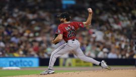 Named the D-backs' Most Valuable Pitcher by the Arizona chapter of the BBWAA for the third time after going 17-9 with a 3.47 ERA (81 ER in 210.0 IP) and 220 strikeouts over 34 starts in his fifth season with Arizona...Set career highs in virtually all categories, including wins, quality starts (20), starts, innings and strikeouts...Ranked among qualifying National League leaders in innings pitched (second), starts (second), wins (second), strikeouts (third), WHIP (sixth, 1.12), win percentage (sixth, .654), ERA (seventh) and opponent average (T-ninth, .238)...Finished fourth among National League starting pitchers with a 4.3 bWAR...His 2.47 home ERA ranked third-best in the Majors, behind Logan Webb/SF (2.26) and Kodai Senga/NYM (2.42)...Ranked among D-backs pitchers in franchise history in career home starts (min. 50 GS) in ERA (first, 2.84), WHIP (first, 1.05), home runs allowed (T-first, 34), strikeouts per 9.0 innings (third, 10.27), walks (fourth, 87), strikeout-to-walk ratio (fourth, 4.20), wins (seventh, 24) and strikeouts (seventh, 365)...His .081 opponent average with runners in scoring position at home was the best in the Majors, ahead of Justin Verlander/HOU (.164) and fellow D-back, Merrill Kelly (.167). In 16 home games, went 12-3 with a 2.47 ERA (28 ER in 102.0 IP), 120 strikeouts, 1.03 WHIP, .230 opponent average and seven home runs allowed...Tossed his first career 9.0-inning shutout on Sept. 8 @ Cubs with three hits and one walk allowed while recording nine strikeouts … became the fourth D-backs pitcher (sixth time) to toss 9.0+ innings, with zero runs, three or fewer hits, one or fewer walks and nine plus strikeouts in a game(also: Curt Schilling on April 10, 2001 and May 14, 2003; Randy Johnson on Sept. 14, 2003 and May 18, 2004; Ian Kennedy on April 25, 2011)...Eclipsed 200.0 innings pitched, becoming the 21st D-backs pitcher to reach the feat (last: Merrill Kelly in 2022). Owned a 21.8 scoreless streak from April 10 to May 2 (first inning)...POSTSEASON: Went 2-3 with a 4.54 ERA (17 ER in 33.2 IP) over six starts...Won the series-clincher in Game 2 of the National League Wild Card @ Brewers (two ER in 6.0 IP)...Won Game 2 of the NLDS @ Dodgers (two ER in 5.1 IP)...Took a no-hitter into the seventh inning of Game 5 of the World Series vs. Rangers before allowing three hits with six strikeouts and one walk (L; one ER in 6.1 IP)...Along with Gerrit Cole, was the only pitcher in the Majors in 2023 to toss 200.0+ innings and record 200+ strikeouts...Became the sixth D-back pitcher in club history (12 total times) with 200.0+ innings and 200+ strikeouts in the same season along with Randy Johnson (five times), Dan Haren (two times), Curt Schilling (two times), Patrick Corbin (one time) and Zack Greinke (one time) (last: Corbin in 2018)...Became the first D-backs pitcher to record 200+ strikeouts in a season since Robbie Ray in 2019 and seventh overall...Selected as National League Player-of-the-Week for April 10-16, 2023 after going 2-0 over 13.2 scoreless innings in two games, with five hits, one walk and 18 strikeouts...Named to his first All-Star Game in 2023 and earned the starting nod … tossed 1.0 scoreless inning with one strikeout...Earned 2023 All-MLB First-Team honors with fellow D-back, Corbin Carroll … joined Gerrit Cole/NYY, Shohei Ohtani/LAA, Blake Snell/SD and Spencer Strider/ATL as the five starters selected...Finished third in the Cy Young Award voting, receiving one first-place vote and three second-place votes.