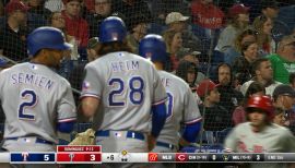 Los Rangers anotan 3 en la 6ta entrada ante los Filis