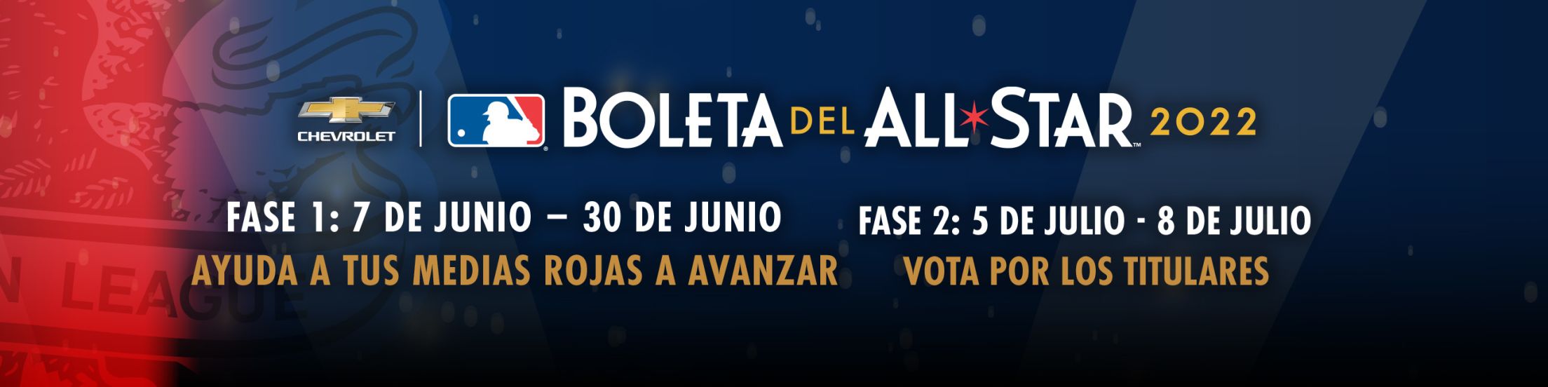 Para ser elegible para esta oferta de boletos, los aficionados deben transmitir exitosamente al menos una (1) Boleta Chevrolet para el Juego de Estrellas MLB 2022 (“Boleta(s) en Línea) durante la etapa de votaciones que comienza el 8 de junio del 2022 a las 11:59 a.m. ET, y termina el 30 de junio a la 1:59 p.m. del 2022 (la “Etapa de Participación”), con los Medias Rojas elegidos como el Club “favorito”. La Boleta en Línea está disponible en https://www.mlb.com/es/all-star/ballot.