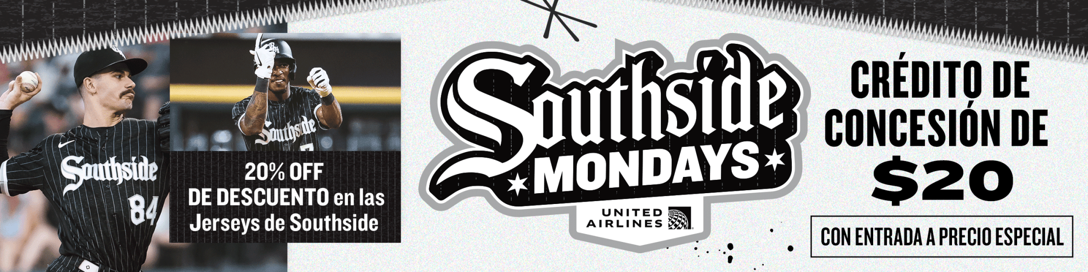 Los fanáticos que compren boletos con precios especiales para Southside Mondays presentados por United Airlines recibirán $20 en crédito de concesión agregados a su boleto móvil. Los fanáticos deben comprar a través del siguiente enlace para recibir el crédito de concesión. El crédito de concesión se puede aplicar a alimentos y bebidas, pero no incluye el comercio minorista. Use el código de barras en su boleto para canjear en todas las ubicaciones de concesión.