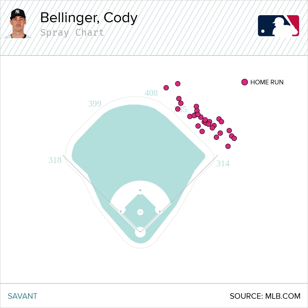 Bellinger ya ha demostrado lo bien que encaja su perfil en el roster de los Yankees. Su capacidad para jugar en el jardín central brinda una flexibilidad defensiva crucial, y su bateo zurdo está hecho a la medida para la verja corta del jardín derecho en el Yankee Stadium. (Su gráfico de jonrones en 2025 lo comprueba). Además, casi no se poncha, lo cual es un alivio para una alineación que tiene muchos bateadores de swing y fallo.