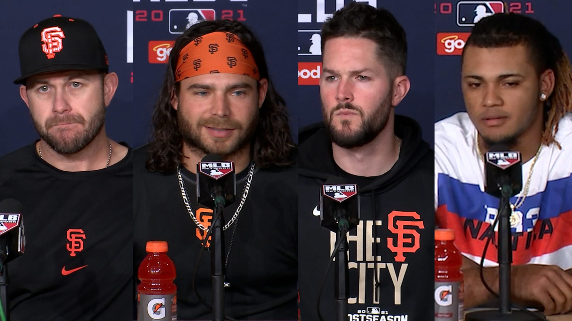 Members of the Giants discuss the homer from Evan Longoria, Alex Wood's pitching and the 1-0 win in Game 3 against the Dodgers