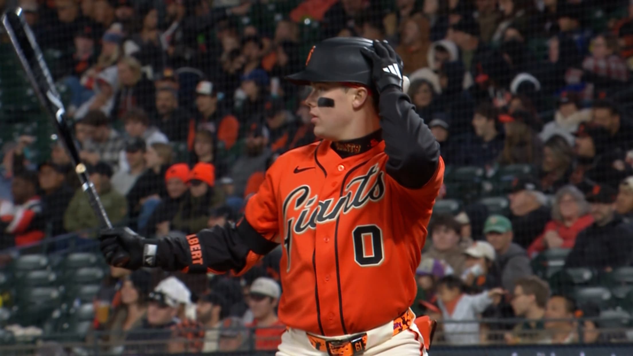 LaMonte Wade Jr. makes a leaping catch into the wall to get the Giants out of a bases-loaded jam in the 3rd inning