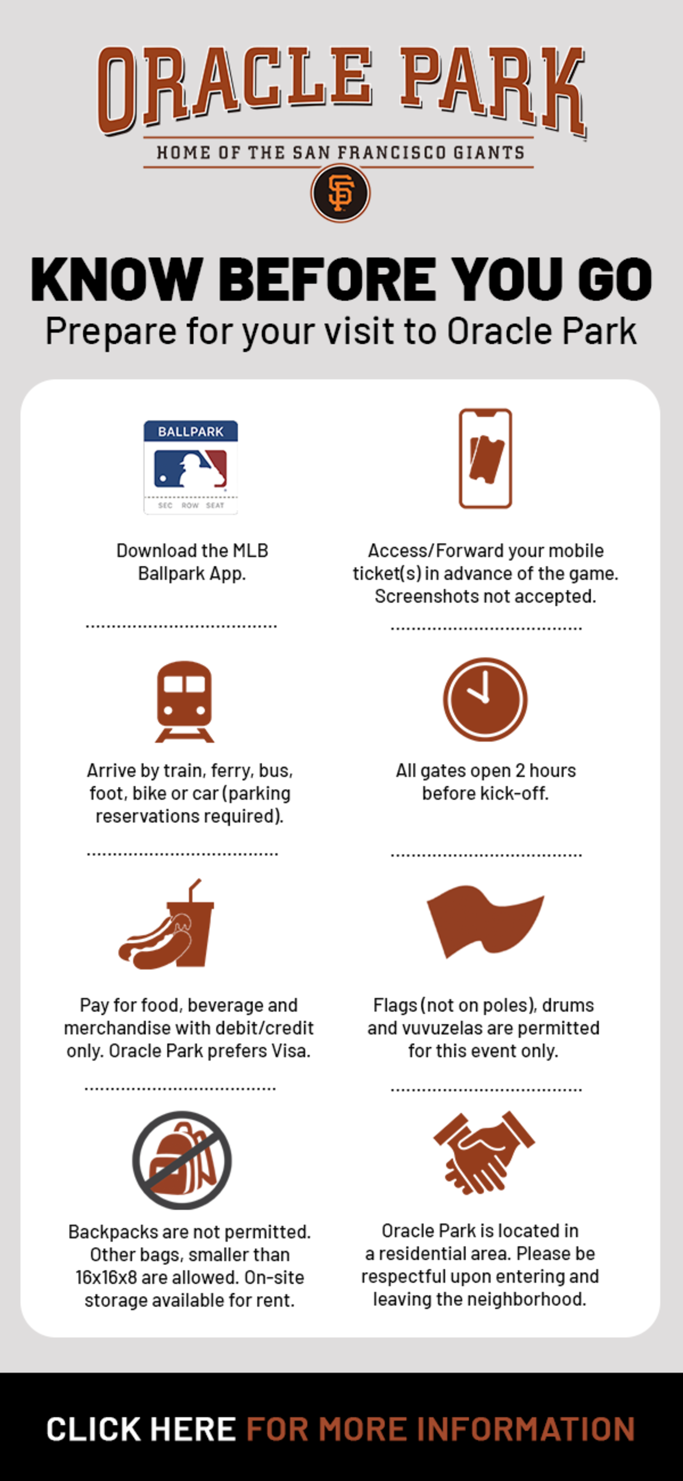 Oracle Park is located in a residential area and we ask match-goers to be respectful upon entering and leaving the neighborhood.