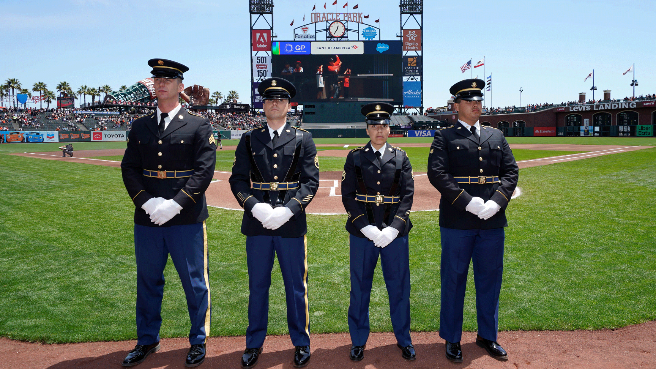 In solidarity with MLB, the Giants observe Armed Forces Weekend every season to salute all active military members, veterans and their families. The Giants team dons special Armed Forces caps while military members and the nonprofit organizations that serve them are celebrated throughout pregame and in-game festivities.