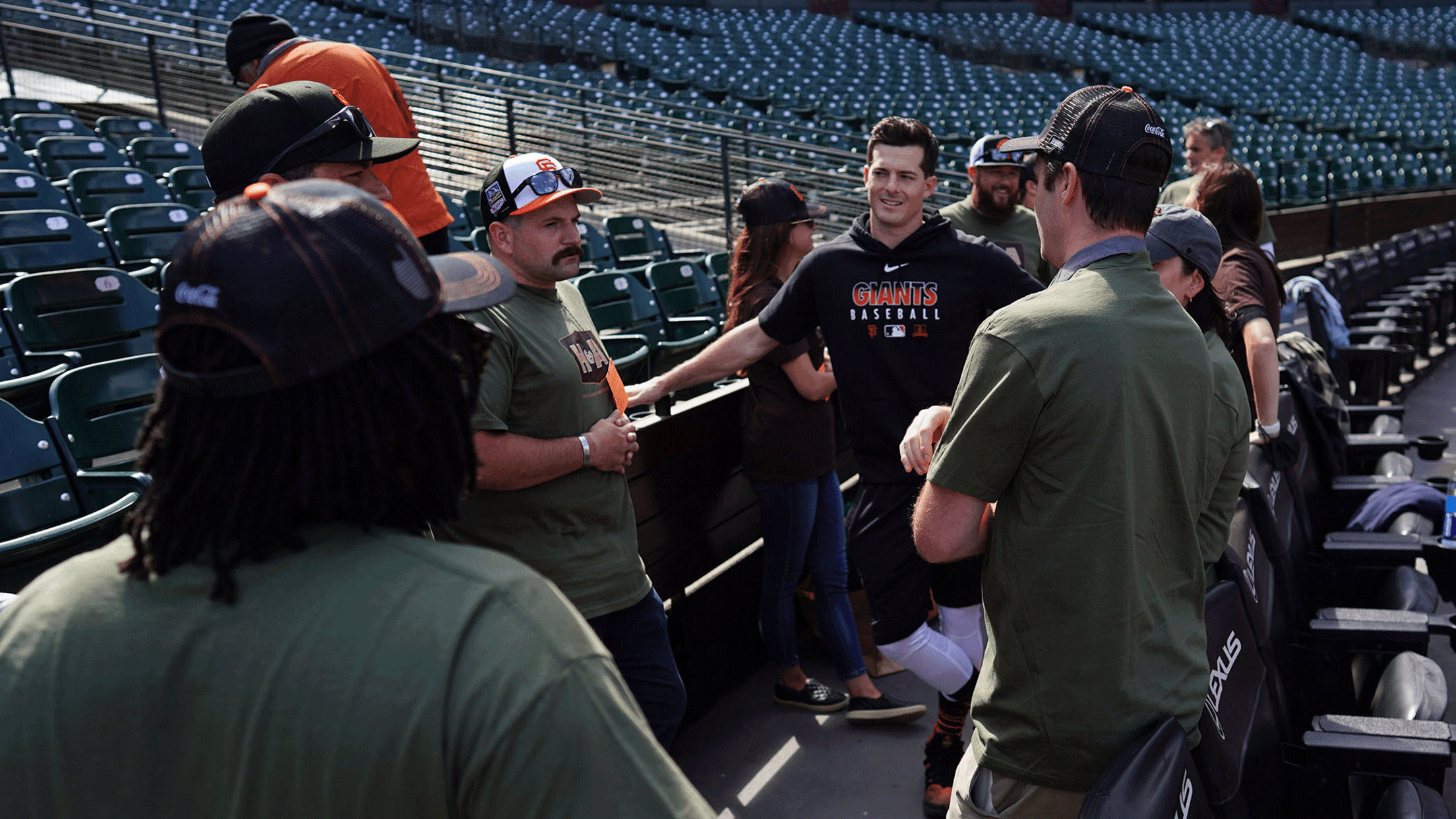 The Giants are proud to work with veteran organizations to host military members and families for on field visits and meet-and-greets, throughout each season. For veteran discount offers on Giants game tickets, please visit: mlb.com/giants/tickets/specials/govx-verify.