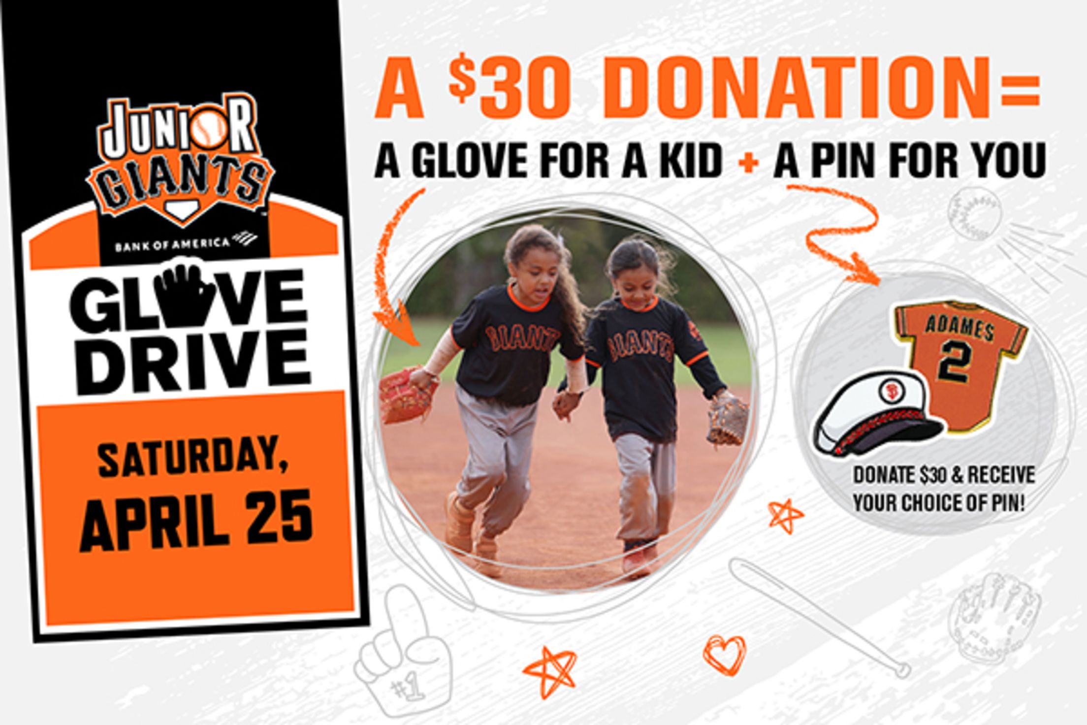 Returning on Saturday, April 25, we’re once again rallying Giants fans in support of our annual Junior Giants Glove Drive. This season, more than 15,000 Junior Giants will take the field without a glove of their own—and you have the chance to change that.