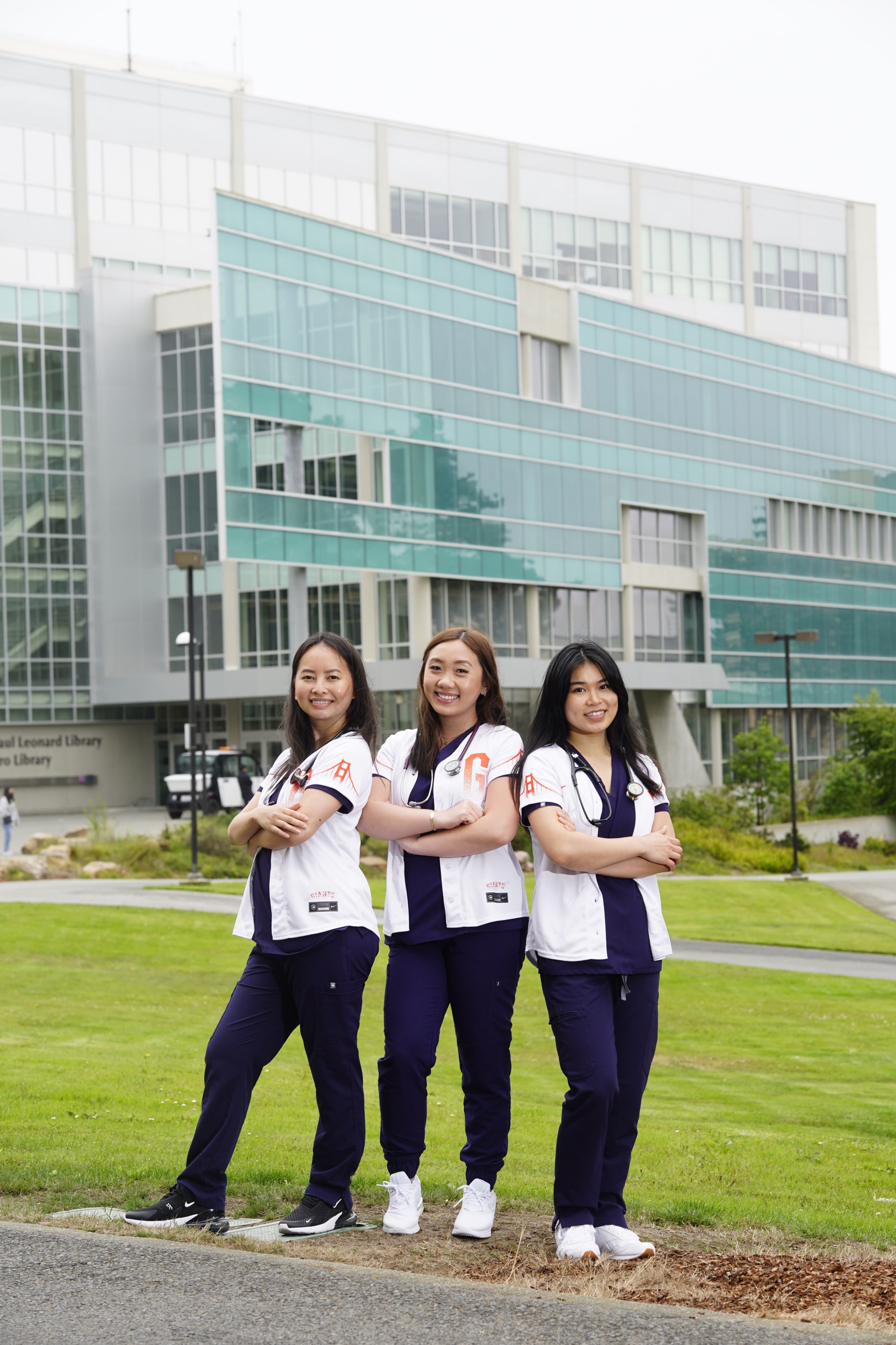 In July, three of the four ambassadors finally met in person. Emily, Elaine and Margaret met up at San Francisco State for the portrait with this story, sporting their San Francisco Giants jerseys – and their stethoscopes.