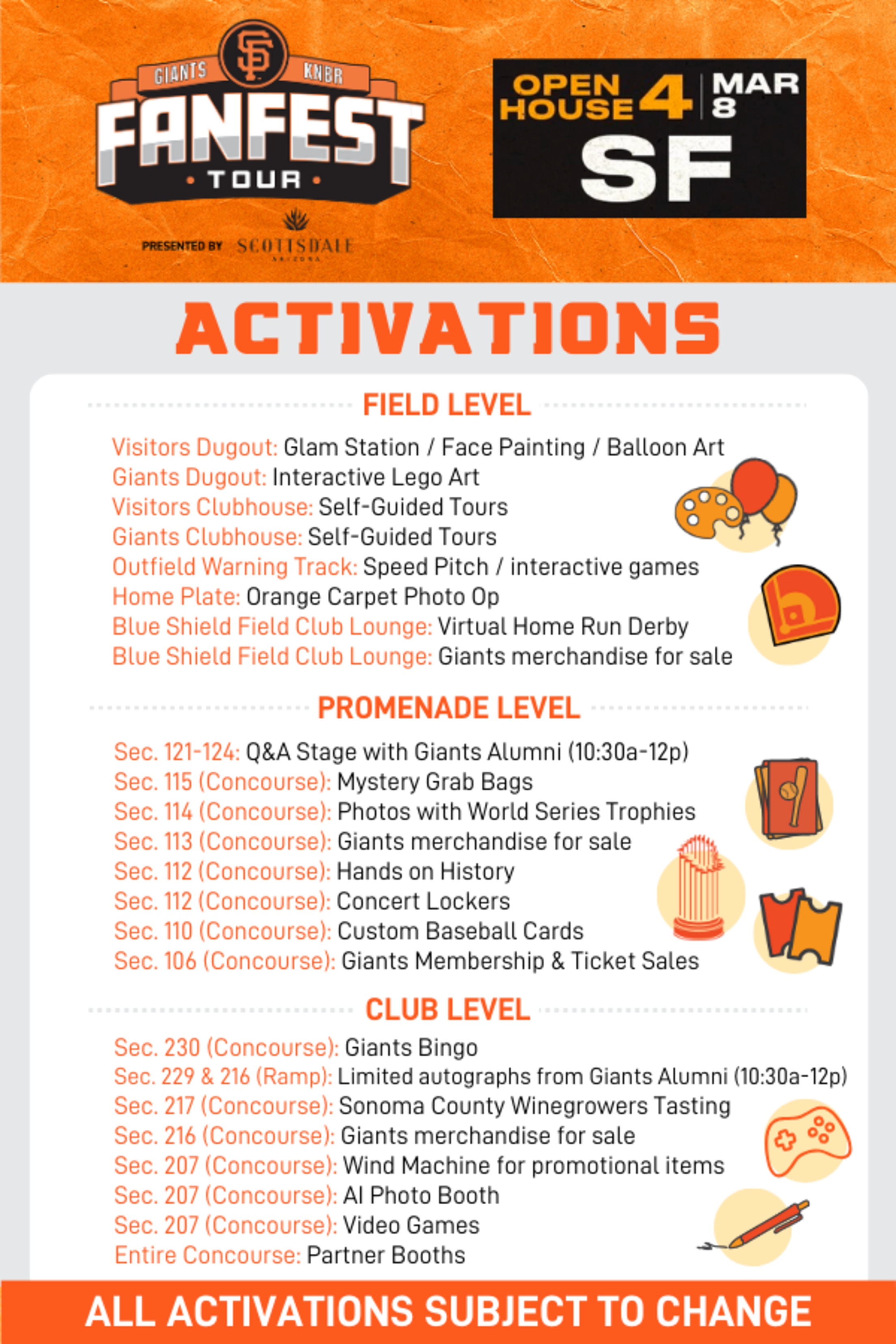 The Open House will take place rain or shine. Umbrellas are permitted inside Oracle Park.