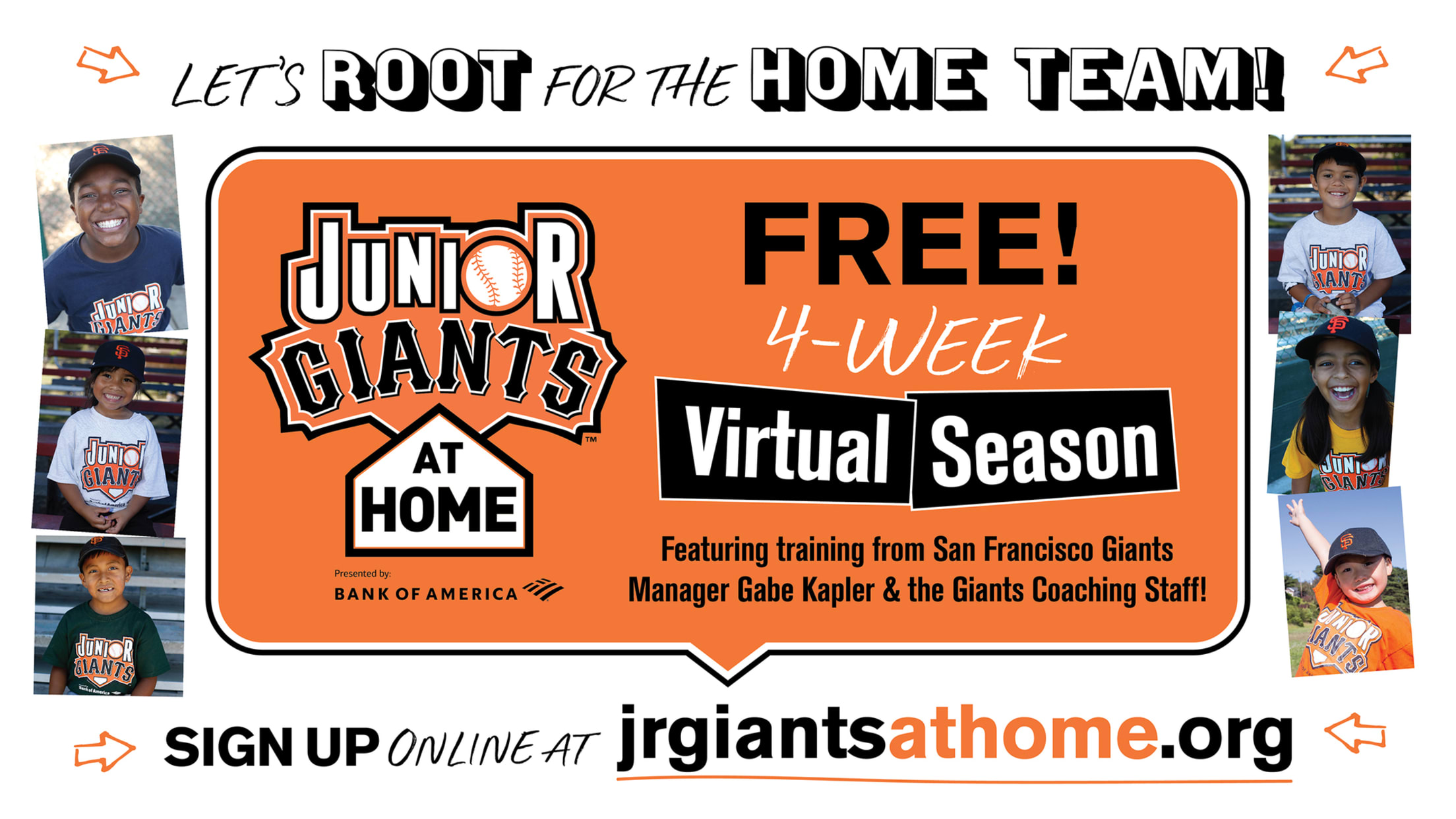 In an effort to keep youth connected during times of isolation, the Giants Community Fund has launched Junior Giants at Home! The free 4-week, virtual season offers youth ages 5-18 the opportunity to stay active through live, online practices hosted twice a week. Junior Giants will learn the fundamentals of the game, be introduced to important lessons in health, education and character development and have access to exclusive training videos from Gabe Kapler and the San Francisco Giants coaching staff. Registration is now open!