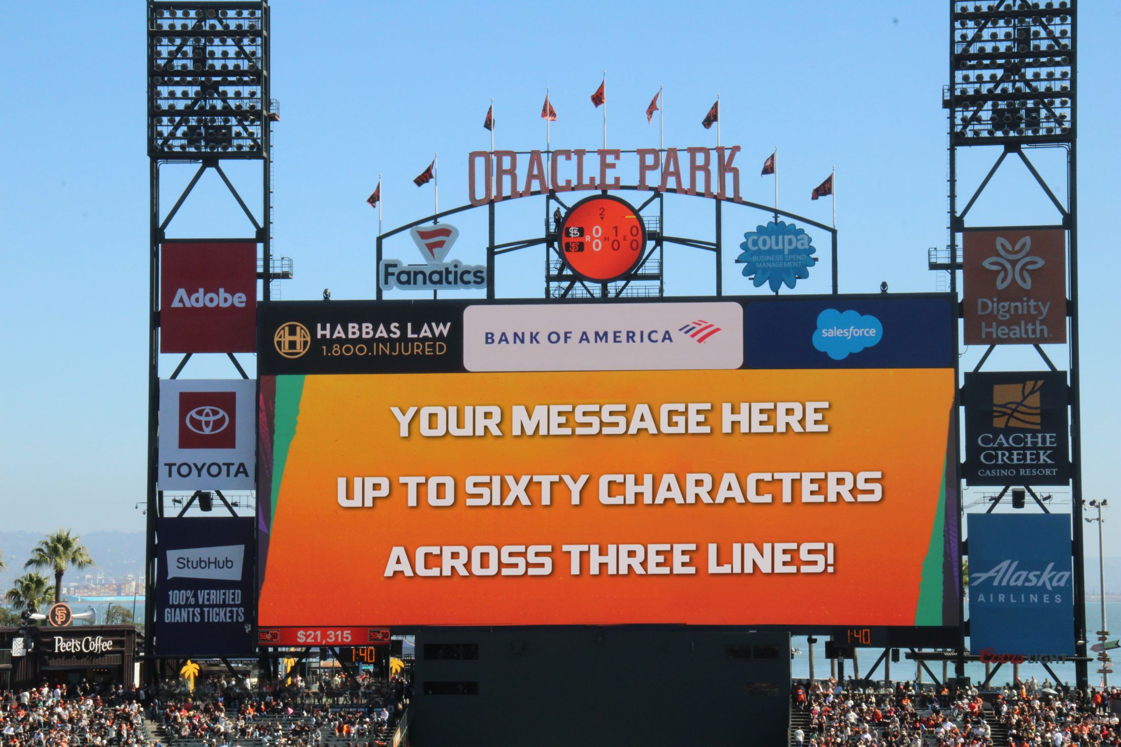 You have the opportunity to put your special moment on the scoreboard at Oracle Park!