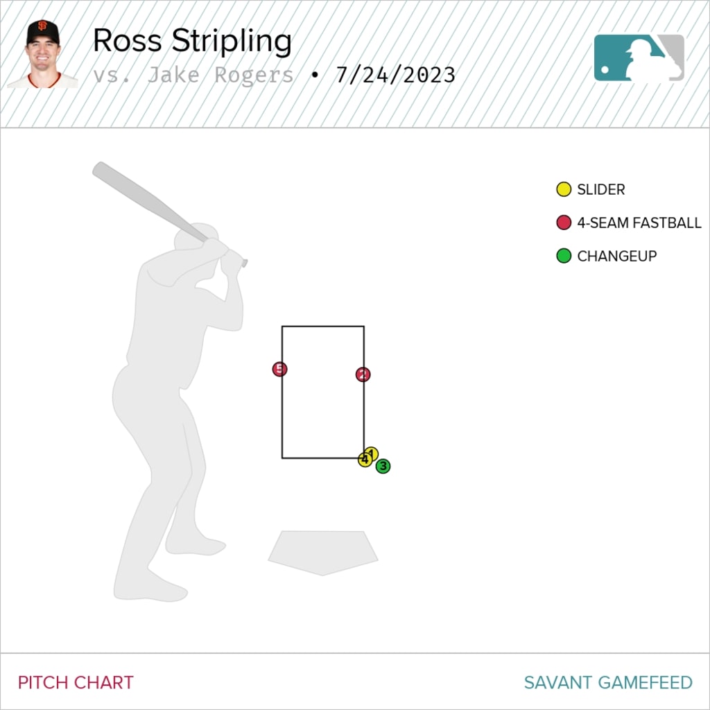 Stripling got the second out of the inning when Spencer Torkelson lined out to center, then faced Kerry Carpenter with a chance to escape the frame. With a 1-1 count, Stripling landed another changeup at the bottom of the zone. Carpenter couldn’t do much with it: his grounder had an expected batting average of .220, per Statcast. But it snuck between first and second base, bringing home the Giants’ second run.
