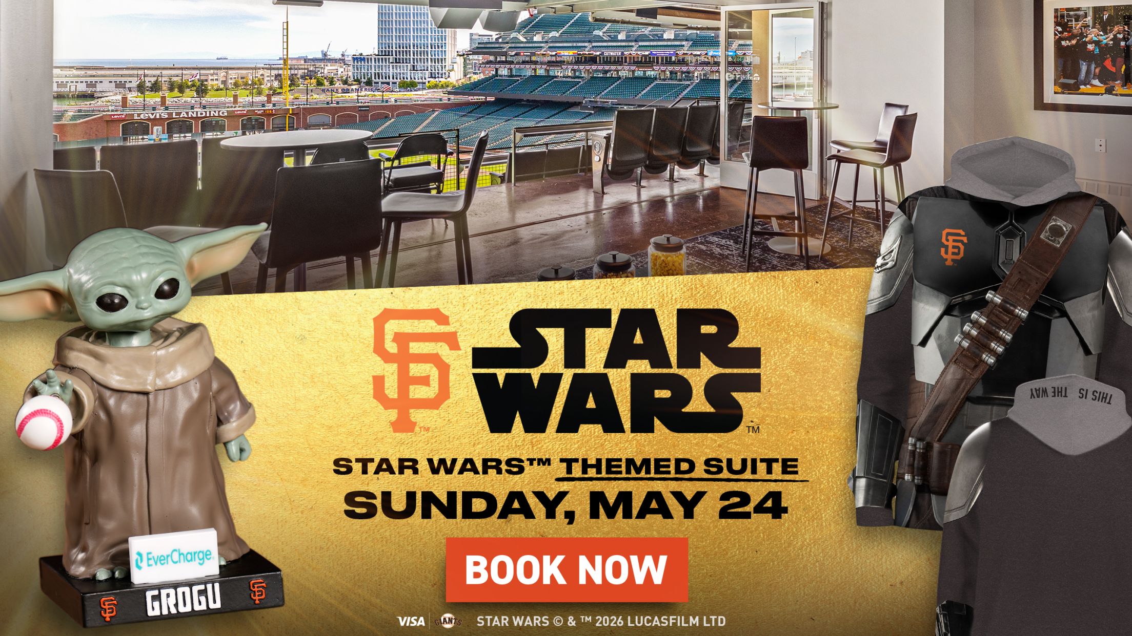 Elevate your STAR WARS™ Day at Oracle Park in a private suite that includes both exclusive giveaway items and a special STAR WARS™character experience, when the Giants take on the White Sox on Sunday, May 24. Choose from select Left Field Party Suites that seat 12-20 guests.