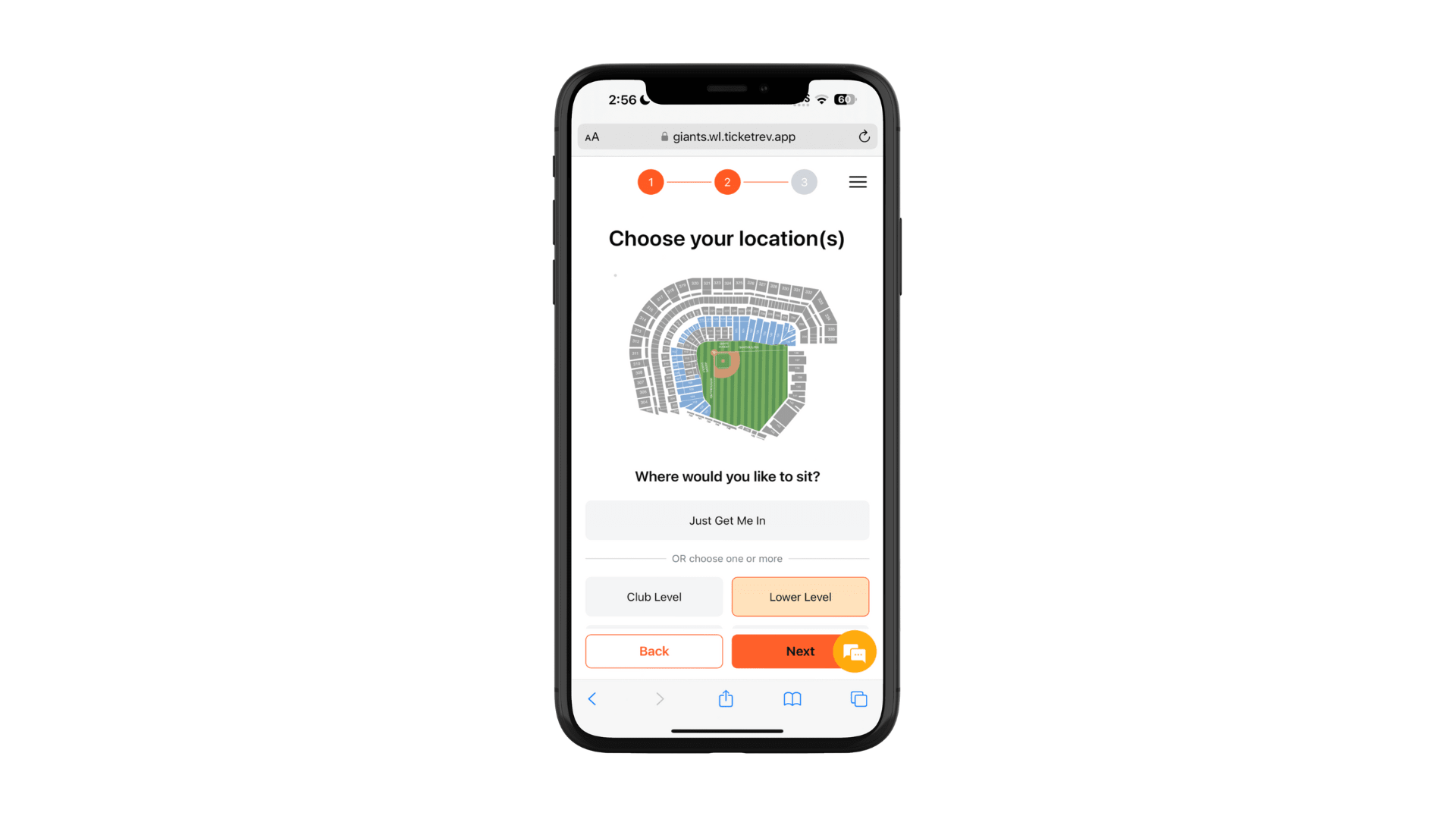 - Select your preferred seating location(s)