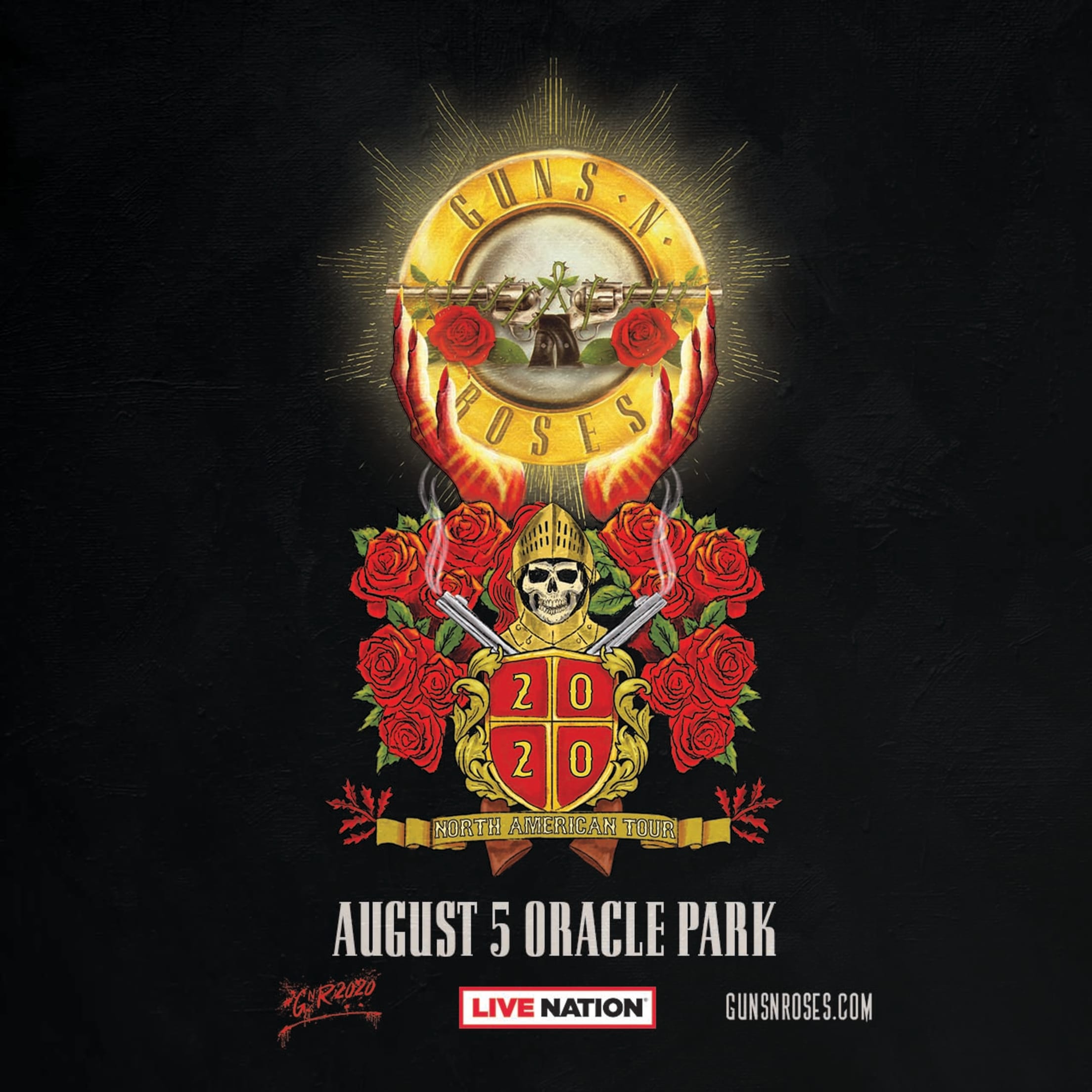 Rock and roll legends Guns N’ Roses will take the stage at Oracle Park Wednesday, August 5, as part of their epic 2020 worldwide stadium tour. The powerhouse performers will bring their uninhibited signature sound and dominance to San Francisco this summer. The iconic rock heroes will show off their vast catalog of hits on the road, including "Welcome to the Jungle," "Paradise City," "Sweet Child o' Mine" and "November Rain."
