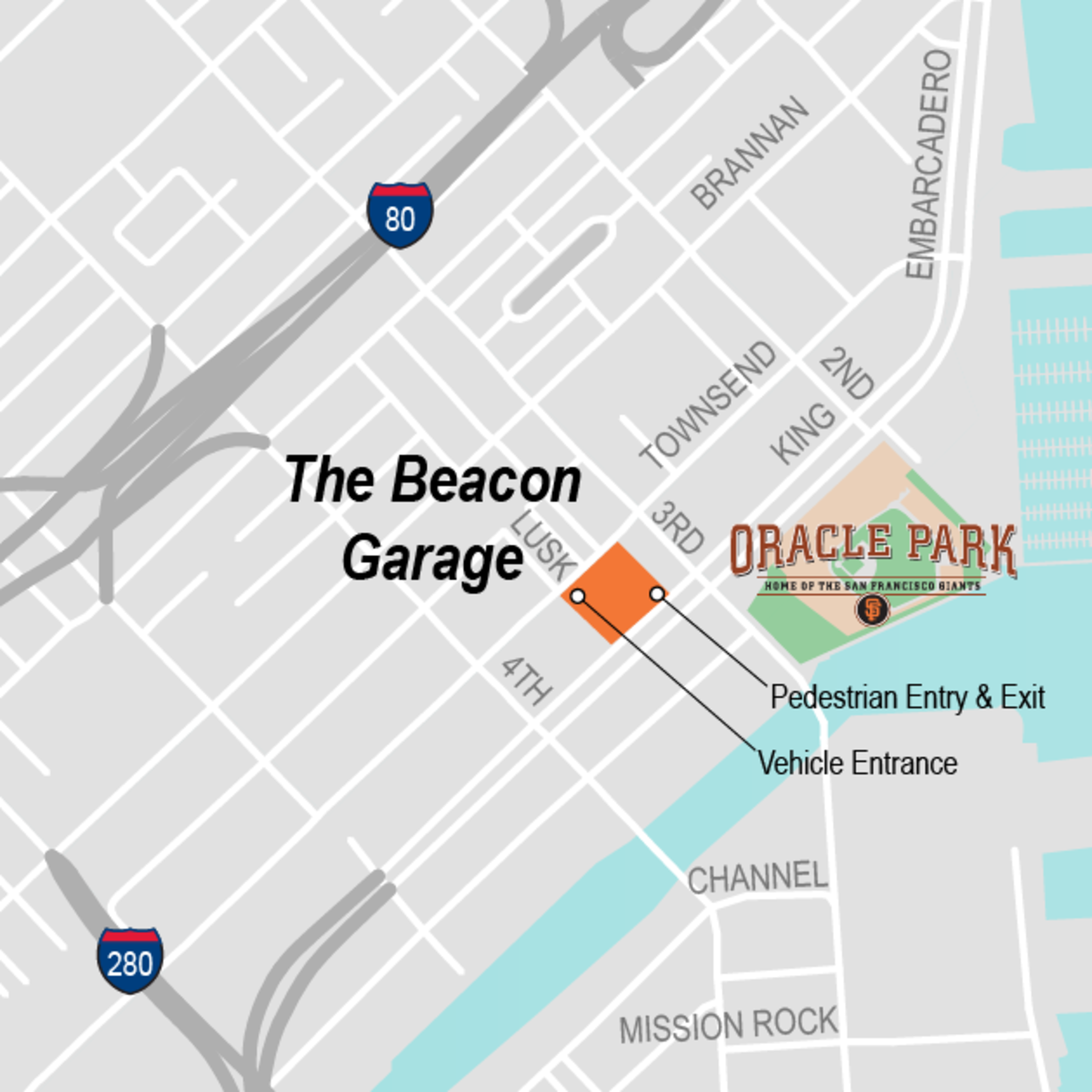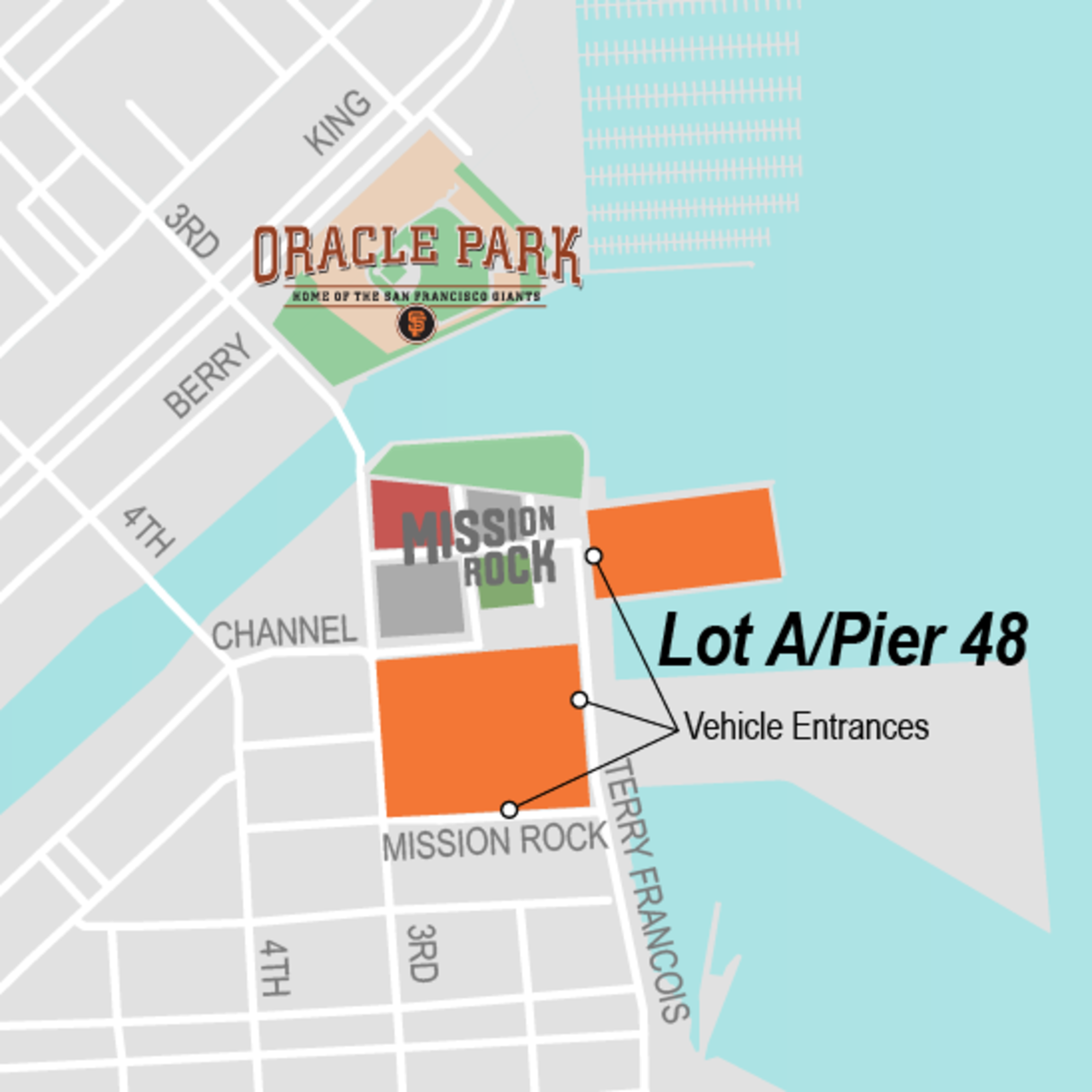 - Lot A/Pier 48: Our classic parking facility just south of Oracle Park.